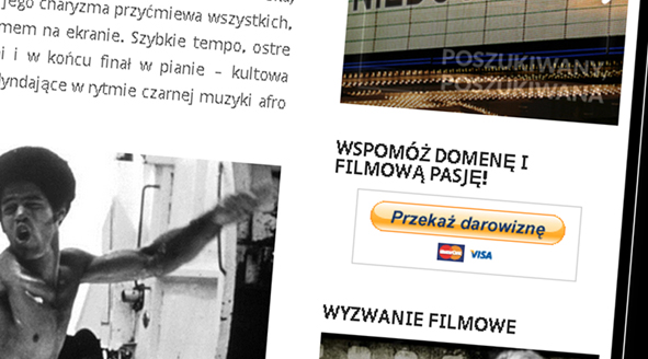 Jeżeli i Tobie podobają się moje teksty, recenzje, zestawienia, działy, zapowiedzi, sposób prowadzenia fanpejdża, nie krępuj się. Nie ma tu ustawionej kwoty, możesz wysłać dowolną sumę. W ten sposób powiesz: „Dzięki za to, że zarażasz mnie swoją filmową pasją. Dzięki, że opowiedziałeś o tym filmie. Dzięki, że zwróciłeś uwagę na ten filmowy szczegół”. Wszystkie wpłaty idą na utrzymanie serwera!