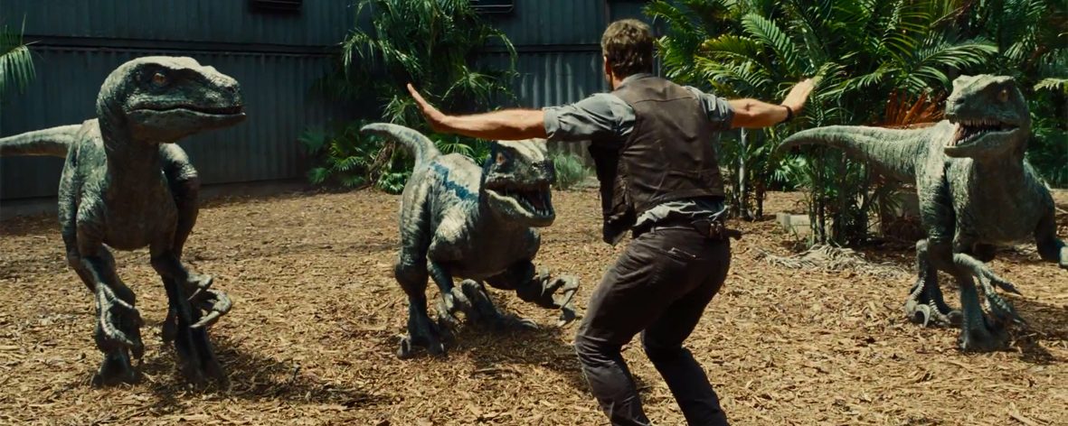 Ciocia o której wspomniałem, czyli manager Parku, Claire (Bryce Dallas Howard) – poślubiona korporacji jest jedną z osi stanowiącej przyczółek dla wątku romantycznego. To właśnie ta Claire z kampanii promującej rodzicielstwo. Ta sama, która ma wszystko, ale nie zdążyła mieć dzieci. Szpilki, skrojony na miarę uniform, nienaganna fryzura i próba utrzymania porządku na najwyższym poziomie. Przeciwległym biegunem dla ułożonej Claire jest gwiazda wszystkich okolicznych blocbkusterów, czyli Chris Pratt. Gra tutaj byłego marines, obecnie pracującego jako poskramiacz dinozaurów. Najbliżej mu w zachowaniu do Paula Hogana z Krokodyla Dundee. Nieobyty, trochę szorstki, męski i odważny. Jako że przeciwności (tym bardziej filmowe) się przyciągają, wątek romantyczny gotowy. Pratt nie zawodzi, chociaż muszę przyznać, że jest coś co mnie niepokoi, a jego może w pewnym momencie ograniczyć w rozwoju kariery. Otóż Pratt swoim emploi pokazuje ciągle tego samego Pratta. To znaczy, że mógłby wejść do szafy i wyjść z drugiej strony z szopem na ramieniu i zagrać w Guardians of the Galaxy. Pomimo prób ograniczania jego naturalnych ciągot w kierunku komedii, to i tak nie dało się ukryć całkowicie pana śmieszka. Nie było na to szans. W przypadku Jurrasic World to dobrze, jednak w przyszłości odbije się to czkawką. No i są ci źli (wojskowi rzecz jasna). Chcą wykorzystać dobre dinozaury w walce z wrogiem na prawdziwym polu walki.