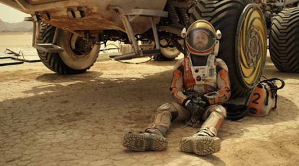 Mark Watney, jako botanik wykorzystuje swoje umiejętności i próbuje wydłużyć czas, który mu pozostał do śmierci. Ponieważ kalorie zapewniają przeżycie, Mark kombinuje jak może, by z tego daleko wysuniętego przyczółka zrobić małą farmę… Trzonem opowieści jest więc walka botanika z nieprzyjaznym środowiskiem. My naprawdę czujemy, że jest tu sam. Głównie za sprawą odległych kadrów łapiących gdzieś w oddali malutką bazę lub długich najazdów (świetnie się tu sprawdza 3D) przez marsjańskie wzgórza wprost do malutkiego łazika. Przy tej okazji trzeba oczywiście pochwalić Dariusza Wolskiego, twórcę zdjęć do filmu.