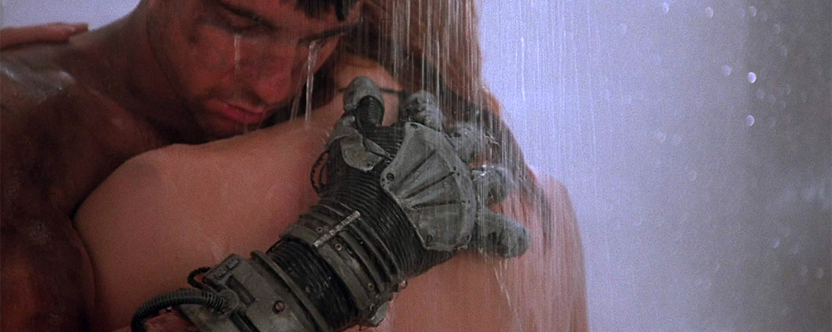 Fabularnie historia została oparta na krótkiej komiksowej historyjce SHOK! autorstwa Steve’a MacManusa i Kevina O’Neilla. Te kilka plansz dało Richardowi Stanleyowi podstawę do czegoś za czym tęsknię w kinie, a boję się czasem szukać i ryzykować stratę czasu. Cyberpunkowy wymiar historii rysuje się tu przez wykorzystanie krwiożerczego robota porządkowego M.A.R.K. 13, który jako byt może być porównany do zalążka Skynetu. Obserwujemy drogę jego szczątek od nomada do handlarza. Od handlarza, przez postać Mosesa (w tej roli Dylan McDermot. Uważam, że Bill Paxton – brany pod uwagę do tej roli – byłby ciekawszym posunięciem castingowym). Gdy Moses daje w prezencie wrak robota swojej partnerce Jill (Stacey Travis), jako widzowie wiemy, że to końcowy przystanek w podróży maszyny i jednocześnie pierwsza stacja przed nadchodzącym koszmarem. Robot wybudza się, regeneruje i atakuje. Jest w tym działaniu tak samo skuteczny jak T-800 z filmu Terminator (1984) i tak samo żywotny.