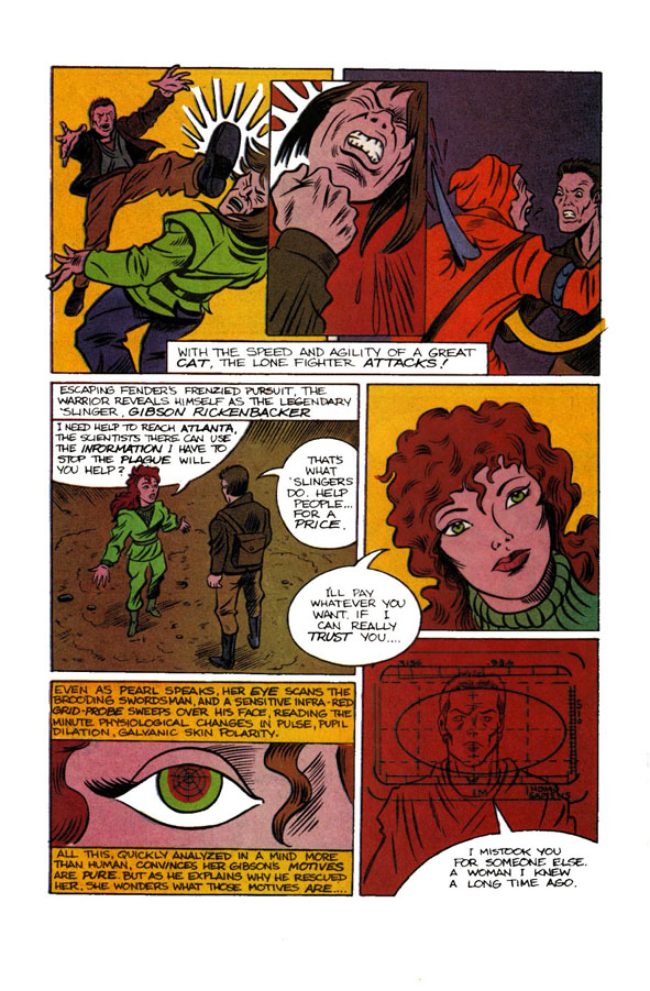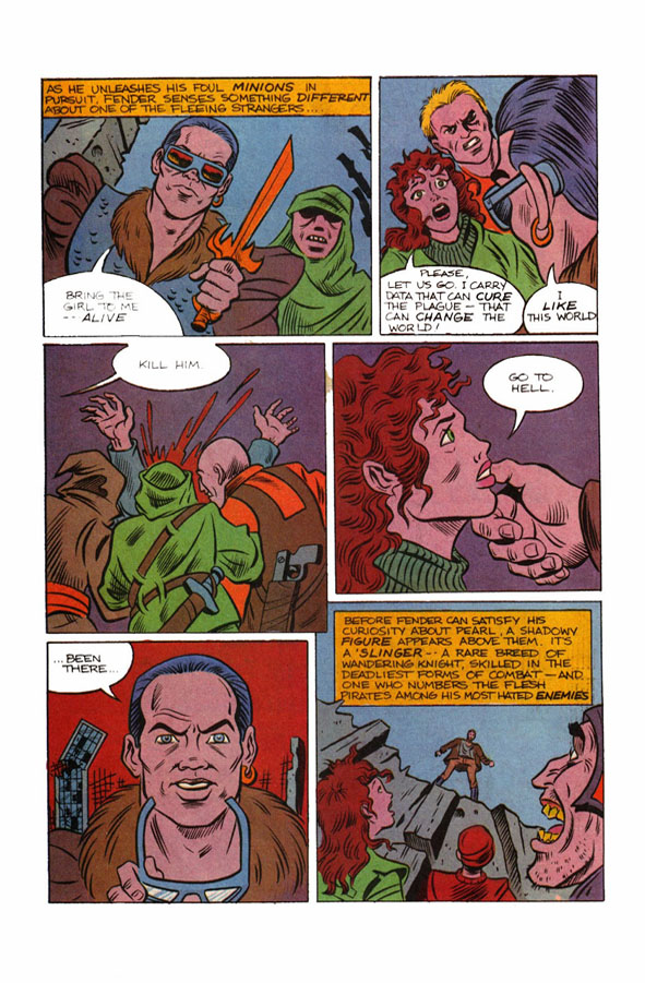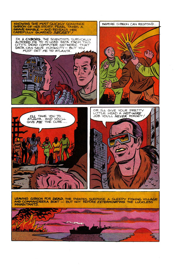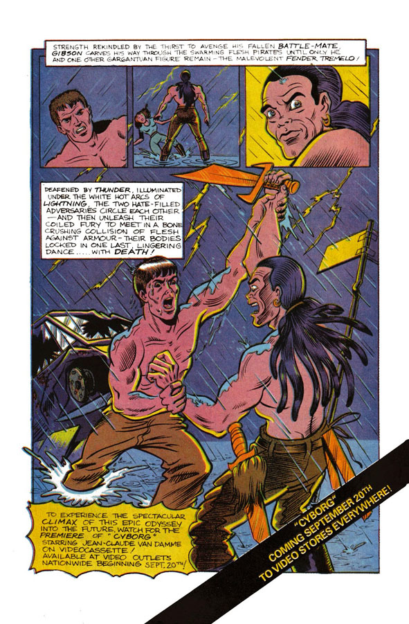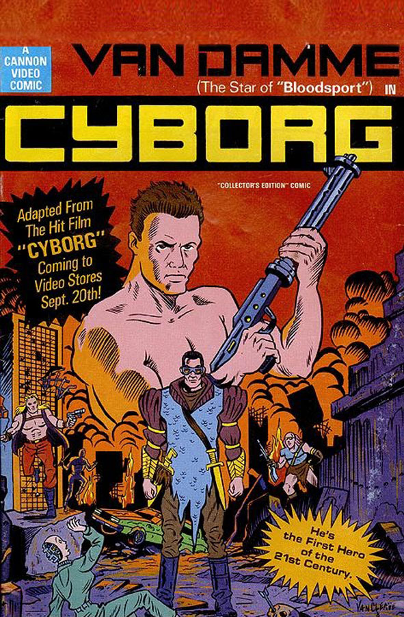 Bez dwóch zdań Cyborg to najlepszy film Alberta Pyuna. Wiedzieliście, że do materiałów promocyjnych dodawany był krótki komiks? Wydany został pod egidą Cannon Video Comic. Oprócz historii obrazkowej, komiks zawierał kilka fotosów z planu filmowego, charakterystykę użytej w filmie broni i notki o odtwórcach głównych ról (Jean-Claude Van Damme, Deborah Richter, Vincent Klyn). Jest też kilka ciekawych informacji o samej produkcji, między innymi o tym, jak to pierwotnie miał zagrać w Cyborgu Chuck Norris. Producenci Menahem Golan i Yoram Globus z Cannon Video przekonali jednak Alberta do JCVD po jego sukcesie w Krwawym sporcie (1988). I całe szczęście! Nie wyobrażam sobie ukrzyżowanego wąsacza w tym jakże zacnym post-apo…