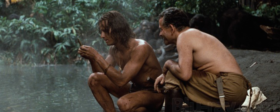 Hugh Hudson, reżyser filmu, który już na zawsze zostanie zapamiętany jako twórca fenomenalnych Rydwanów ognia z 1981 roku, czekał trzy lata, by pokazać światu swój kolejny film. Decydując się na prozę Burroughsa wykazał się niemałą odwagą. Zdawał sobie przecież sprawę, że temat jest co najmniej oklepany. Jednak poprzednicy nie mieli w ręku tylu atutów, co Hudson. Przede wszystkim budżet. 46 milionów dolarów w latach 80. dawało niezły bufor bezpieczeństwa dla twórcy. Sporą część budżetu pochłonął make-up małp i efekty z nimi związane. Jednak producenci podjęli słuszną decyzję, żeby nie oszczędzać na tym aspekcie. Odpowiedzialny za efekty specjalne i motorykę sztucznych małp – Rick Baker był nominowany za swoją pracę do Oscara. Niech wystarczy, że napiszę, iż Baker zgarnął statuetkę trzy lata wcześniej za Amerykańskiego wilkołaka w Londynie. Mając takiego specjalistę na pokładzie Hudson mógł być spokojny o realistyczny wygląd małp. Akrobaci zamknięci w kostiumach przygotowywali się kilka miesięcy do scen, w których małpy się poruszały. Wszystkie sceny ze zwierzętami są tak perfekcyjne, że pozostaje podsumować je słowami: magia kina.