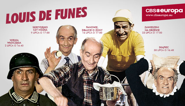 W sobotnie lipcowe popołudnia CBS Europa rozpoczyna cykl spotkań z jednym z najsłynniejszych komików wszech czasów – legendarnym Louisem de Funèsem. Na początek proponujemy klasyki: „Wielka włóczęga” (2 lipca o 16:40), „Skrzydełko czy nóżka” (9 lipca o 17:00), „Panowie, dbajcie o żony” (16 lipca o 17:00), „Zawieszeni na drzewie”(23 lipca o 17:00) i „Skąpiec” (30 lipca o 16:40). Widziałem wszystkie z proponowanych i wszystkie gorąco polecam. Dla mnie osobiście Louis de Funès to kawał telewizyjnych wspomnień, bo trzeba Wam wiedzieć, że nigdy nie przepuściłem komedii z mistrzem.