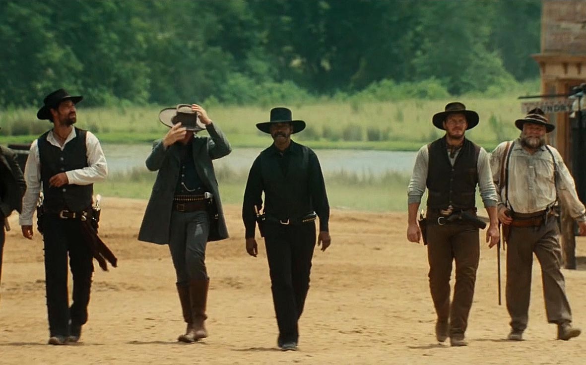 Skrypt tego filmu jest materiałem szczególnym, bo właśnie na bazie zarysu scenariusza (siódemka zróżnicowanych charakterów jako antagoniści kontra oprawcy wieśniaków) rzecz można doskonale „sprzedać” w dzisiejszych czasach. Niestety opiera się to na głównym założeniu stworzenia czegoś na wzór boys bandu. W roku 1960 każdy z siedmiu wspaniałych różnił się przede wszystkim osobowością i kierował się motywami, które w trakcie opowieści potrafiły się zmienić. Postaci dojrzewały, były z krwi i kości, a widz czuł, że każdy z nich ma swoją historię i każdy może stanowić materiał na osobny film. Anthony Fuqua tylko szkicuje, przygotowując każdemu z bohaterów szereg (raptem kilka) cech, którymi się wyróżnia. Resztę załatwia look i outfit. I tutaj idzie główny zarzut, jednak zdaję sobie sprawę co kierowało producentami. Każdy widz zdaje sobie sprawę o co tutaj chodzi. Bohaterowie mają być rozpoznawalni od razu. Takie są reguły dzisiejszego kina głównego nurtu i można takie podejście szykanować, ale też trzeba to zrozumieć. Nas, smakoszy wytrawnej struktury w psychologicznym nakreślaniu natury bohatera jest coraz mniej, a gros współczesnych widzów musi przede wszystkim dostać szybki obraz i od razu zadeklarować się, czy osobnik mu podchodzi, czy też nie. Takie są reguły i ciężko w mainstreamie o pewne novum, jeżeli chce się grać w pierwszej lidze (czytaj: na szczycie box office).