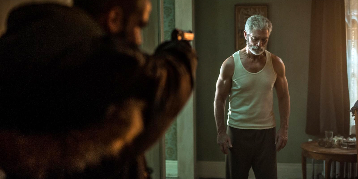 Doskonałe wręcz decyzje operatora Pedro Luque’a, by zebrać w kilku momentach protagonistę i antagonistę w tym samym pomieszczeniu zaowocowało tym, że widz czuje się jak na deskach teatru. Oni stoją koło siebie! Zaraz, zaraz…. antagonistę i protagonistę? Tutaj nie ma protagonistów, bo widz zaledwie w kilku momentach kibicuje włamywaczom. „O tak, kurde. Sami się o to prosiliście!”. I chociaż reżyser próbuje zohydzić niewidomego jak tylko może (wykręcona niespodzianka wymykającą się z ram thrillera i uderzająca w drzwi z napisem horror), to i tak mamy ochotę być po jego stronie. Nieoczywiste, piękne wręcz objawienie w odwróconym home-invasion spełniło wszystkie pokładane w nim nadzieje. Jestem gotów wybaczyć nawet fakt, że pies chyba wyczuł klimat lepiej niż aktorzy. Niestety muszę przyznać, że przy takim temacie, a w szczególności przy „niespodziance” człowiek powinien zbliżyć się do zwierzęcia. Samo sprzedawanie rewelacji (nawet kilku) bez konkretnych reakcji u obu stron, budziło moje zastrzeżenia. Ale… ostatecznie mógłbym to zrzucić na karb zmęczenia jednostki. Zapewniam bowiem, że towarzystwo (całe!) przejdzie tutaj wiele.