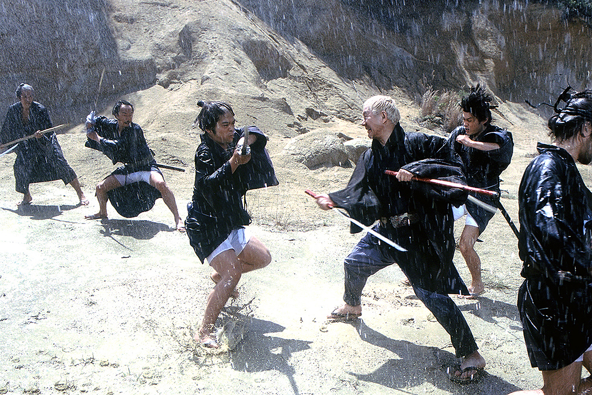 Dla mnie jednak oprócz opowieści samurajskiej kryje się tu western. Oto niewidomy masażysta i legendarny mistrz władania mieczem przybywa do małego miasteczka. Pojawia się, jak ten niesamowity jeździec w filmie z Clintem Eastwoodem. Jest zresztą tak samo tajemniczy, małomówny, nieskory do kontaktów. Jak już się zdarzą (z ludźmi serdecznymi), to serdeczność odwzajemnia. Zatoichi nie przybył do wioski, by odpocząć od walki. To legenda miecza, która nigdy nie ma wolnego. Tym razem chce zrobić porządek z gangiem prowadzącym „dom gry” i ściągającym haracze. Dla nich będzie bezwzględny i okrutny. I nikt nie ma szans z Zatoichim. Czy jest ich pięciu, dziesięciu, dwudziestu. Czy jest deszcz, czy noc. Zatoichi potnie wszystkich, a krew będzie lecieć jak ta woda z hydrantu. Walki to prawdziwa poezja, lecz długością nie przekraczają długości haiku. Jedna, dwie wymiany i delikwent z rozprutym brzuchem leży na ziemi.