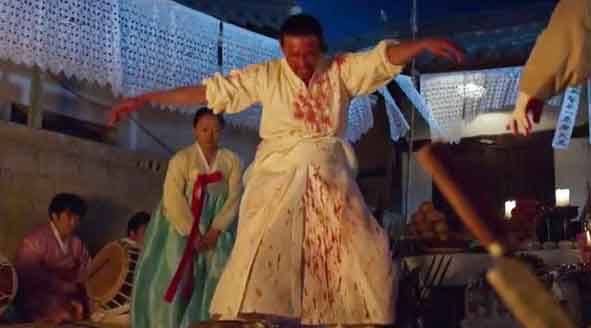 Lament to genialnie przenikający się kulturowo – gatunkowy mariaż. Koreańczyk Hong-jin Na, reżyser takich filmowych sztosów jak W pogoni, Morze żółte (znalazł się w moich 30 najlepszych filmach nakręconych w XXI wieku) ponownie uderzył w nutę, którą tutaj opanował do perfekcji. To strach, który w pewnym momencie zawładnął filmowymi bohaterami, ale (co chyba ważniejsze) w równym stopniu widzem. Chociaż powinienem się skłonić do tego, by podzielić seans na dwie części, to de facto części te tak doskonale się zazębiają i przenikają, że nie sposób dostrzec granicy. Wpływa na to oczywiście gatunkowy, wieloraki miks stylów. Jest i trochę azjatyckiego slapsticku (na pierwszy rzut oka niepasującego, w szerszym wymiarze niezbędnego). Mamy również w przeważającym tonie thriller i dreszczowiec, trochę zombie, duchy, problem z utrzymaniem w ryzach wiary katolickiej, ale i wierzeń związanych z Buddą. I ciągle pada deszcz, jakby podlewał tę farmę pełną wylęgającego się zła. Co ważne, zła, które karmi się niepewnością i uderza najmocniej, gdy bohater stoi na rozdrożu. Chciałbym napisać, że fragmenty zawieszone w swoim suspensie wypadają najlepiej. Ale nie! Trwogi i zamierzonego „WTF?!” jest tu od cholery. Czy nie za dużo tego na jeden film? Nie. Niech się przelewa, niech leje się ta treść po podłodze, kafelkach, drodze, wszędzie. Wyciągniesz z tego tyle, ile dasz radę i odejdziesz od stołu syty. Zawsze.