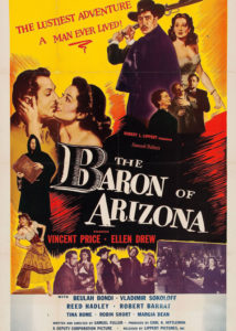 Podejrzewam, że główny wpływ na to miał sam scenariusz. Chociaż Fuller był jego autorem, to na potrzeby filmu zaadaptował prawdziwą historię Jamesa Reavisa – hochsztaplera, łgarza, krętacza, którego losy są równie zawiłe, co podejrzane. Odnosząc się w dużym skrócie do samego życiorysu postaci (i jednocześnie głównej oraz jedynej osi fabularnej), Reavis wyrwał dla siebie stan Arizona i mianował się jego baronem. Ot co!