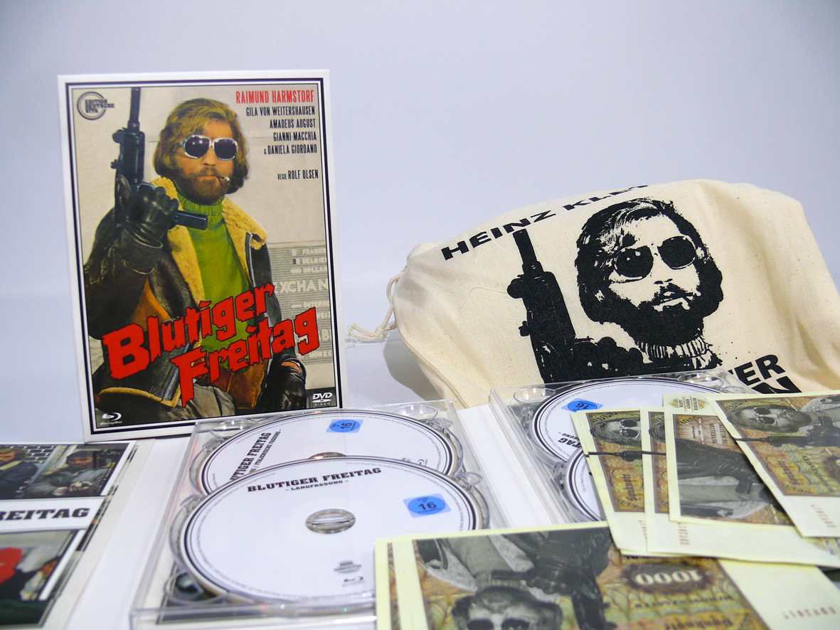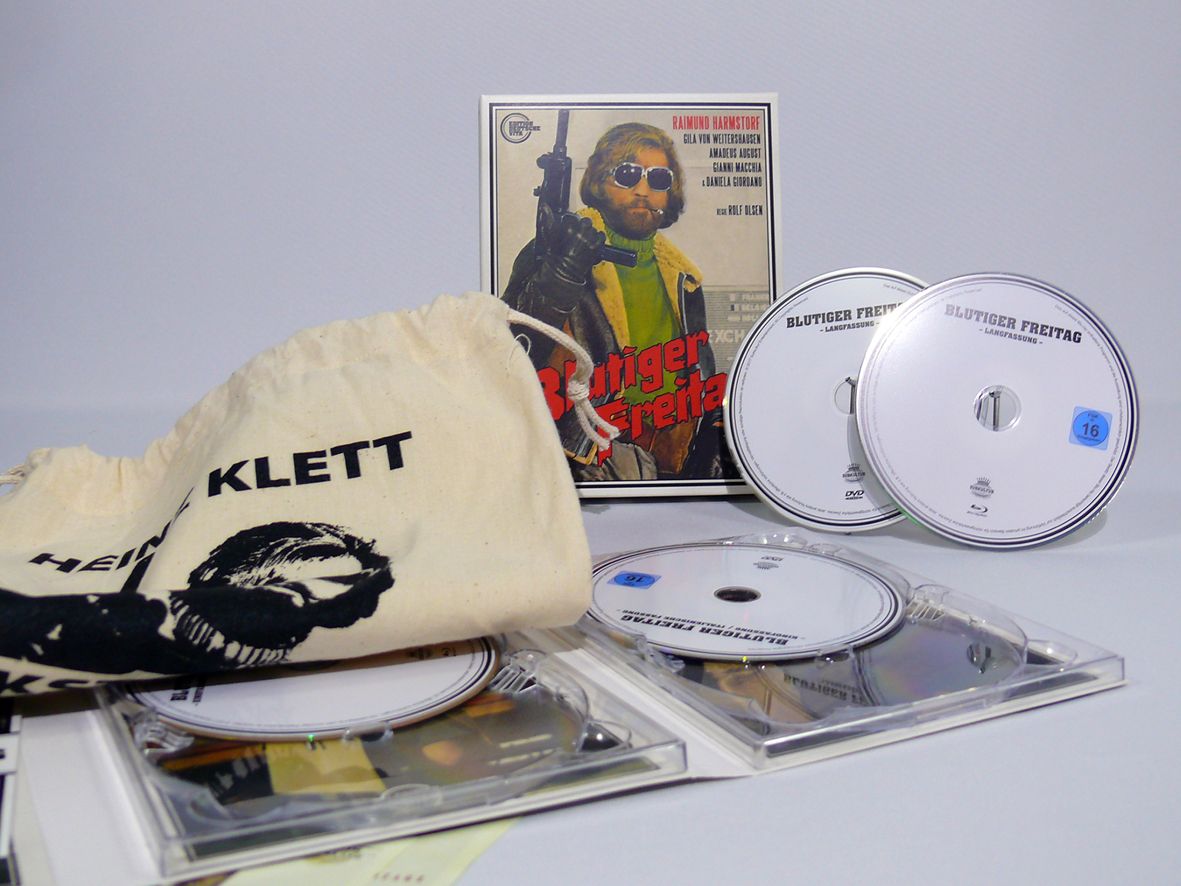 Gustowny bawełniany worek z podobizną Heinza Kletta (w tę rolę wcielił się Raimund Harmstorf), stos banknotów z tą samą facjatą. Sygnowane pudełeczko (moja kopia ma numer 7), pięknie wydrukowana książeczka z kulisami produkcji (niestety dla mnie nieprzydatna, tylko w języku niemieckim) i najważniejsze – czyli 2 płyty blu-ray i 2 x DVD, a na nich (oprócz rzecz jasna filmu w jakości żylety):