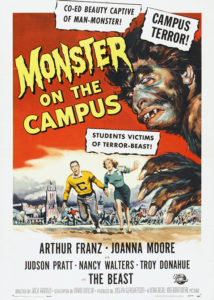 Tym razem groza w wydaniu science fiction z lat 50. nie zagości na farmach, ofiarami nie będą te biedne krowy, a bohaterem nie zostanie lokalny everyman. Monster movie, który wyszedł spod skrzydeł Universal Studio rozgościł się na wyższej uczelni, w dziekanacie, rektoracie, ostatecznie całym kampusie. Ofiarą został profesor Donald Blake (Arthur Franz), który otrzymał do badań prehistoryczny okaz ryby (wyjątkowo dobrze zachowany). Wskutek ukłucia zębem ryby dochodzi do zakażenia i profesor zamienia się w bestię nieświadomą swojej ludzkiej postaci. To trochę wilkołak, trochę po prostu potwór, a przede wszystkim krzyżówka jaskiniowca z szympansem w gumowej masce – największej skazie tego filmu.