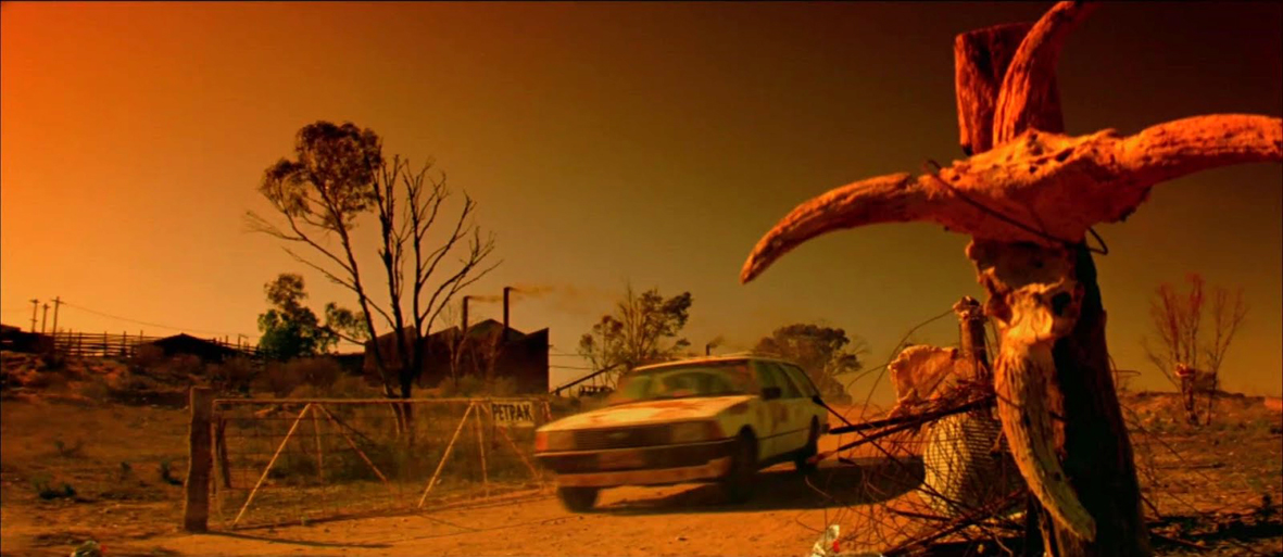 Razorback od pierwszych chwil urzeka zdjęciami i chociażby przez to stawia całą produkcję o klasę wyżej od jemu mu podobnych. Dean Seamler (odpowiedzialny tutaj za zdjęcia) zdobywał w tamtym okresie w miarę regularnie nagrody za pracę operatora w swojej ojczyźnie. Australia Film Institute doceniło go już za Wojownika Szos (Mad Max 2) George’a Millera. Taki talent i wyjątkowe podejście do zdjęć plenerowych musiało w końcu przynieść statuetkę Oscara (Tańczący z wilkami). Razorback w obiektywie Seamlera mieni się wszystkimi barwami antypodów z dominantem krwistej czerwieni. Jednak nie tylko o barwę i poskromione wschody i zachody słońca tu chodzi. Seamler zaskakuje ujęciami z różnych kątów, ciekawą perspektywą, długimi najazdami. Szkoda, że w tak spektakularne kadry zdjęciowe zostaje łapany tak skromnie i oszczędnie wyglądający razorback. Wprawdzie nie mam nic do zarzucenia Bobowi McCarronowi, którego design potwora jest co najmniej porządny (zwłaszcza w ujęciu pyska „głównego bohatera”, bo przecież Bob jest specjalistą głównie od make-upu), ale mały budżet, a być może i brak umiejętności i specjalistów zaowocowały skąpą animatroniką reszty. Operator musiał nad wyraz mocno się starać, by sprytnie markować sylwetkę monstrum.