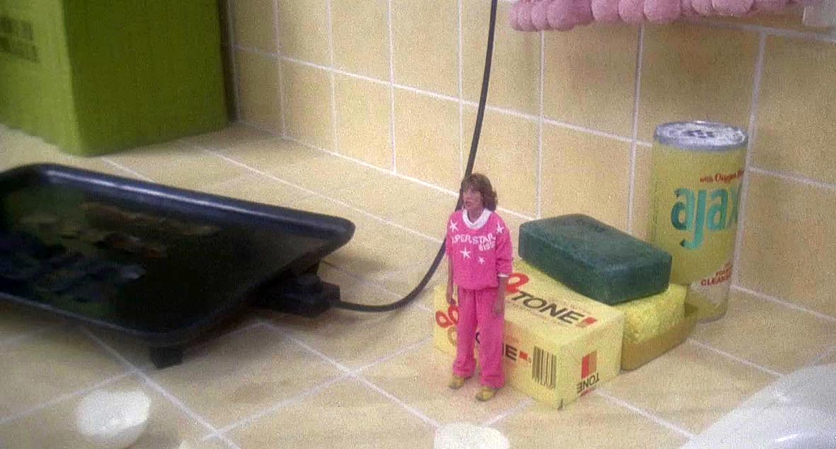 To niezobowiązująca rozrywka skierowana do młodszej publiczności, ale zrealizowana porządnie. Taka też, w której udało się przenieść gros fajnych pomysłów z pierwszej wersji i z literackiego pierwowzoru. Założenie jest takie samo, tutaj przeniesione na grunt sympatycznej rodzinki. Ona – pani domu zajmująca się niesfornymi dziećmi i on – wzięty handlowiec i specjalista od reklamy w jednym, który wychodzi rano i wraca wieczorem. Wszystko w bardzo pozytywnych kolorach z nieco sitcomowym anturażu przechodzi gładko do konkretnej fabuły, czyli incydentu. Winę za postępujący stan rzeczy, czyli przypadłość zmniejszania się głównej bohaterki ponoszą domowe detergenty, perfumy, chemia itd. (to główna gałąź handlu w jakiej działa małżonek). Kobieta więc się zmniejsza, aż osiąga rozmiary pudełka od zapałek.