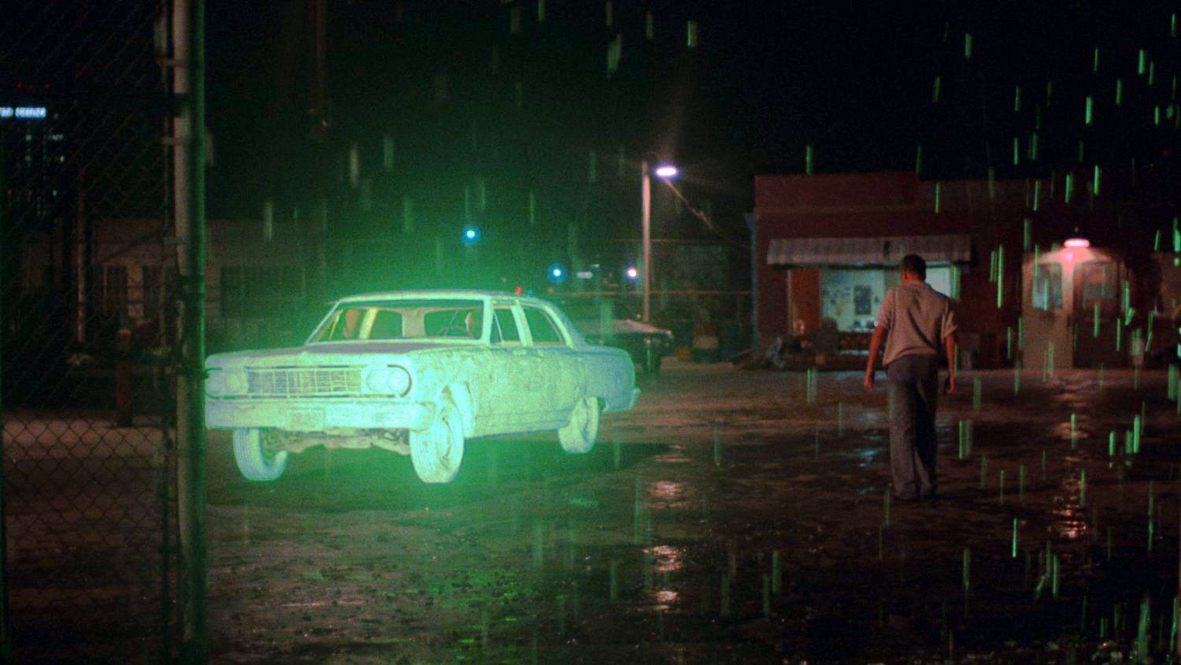 To nasz bohater. A film? Alex Cox, reżyser, taki sam punkowiec jak postaci, które rozrysował w swoim debiutanckim filmie, brnie bawiąc się formą, stylem, odwołując się do kina niepokornego, łącząc kontrkulturowe brzemienia, kino autorskie, odważny manifest o pokoleniu bez perspektyw. Debiut Coxa przypomina mi Miracle Mile Steve’a De Jarmetta. Być może jest bardziej aroganckie, mniej tu czułości, jednak mikser gatunkowo – tematyczny jest nastawiony na tak samo szybkie obroty. Nie przelewa się, o ile nastawisz się na tyle wirującego kultu. Jest punkowo muzycznie (Black Flag, Suicidal Tendencies, Iggy Pop, Circle Jerks), punkowo zadziornie („Fuck You” u Esteveza brzmi tak, że siadasz na tyłku, jeżeli jeszcze przed chwilą stałeś) i pociągnięte punkowym całościowym sztafażem. Ale to i tak wycinek z całego dobra smagający ejtisowe serce. Jest Harry Dean Stanton, który gada tyle co w swoich kolejnych 10 filmach razem wziętych. Są stare piękne samochody, nocne wojaże przez centrum i przedmieściami o świcie. Kuriozalne i infantylne akcje z widoczną potrzebą ciągłej zgrywy, bardzo leniwej, ślimaczej, czasem na porannym nieokreślonym zejściu. Nad wszystkim natomiast przelatuje ufo.