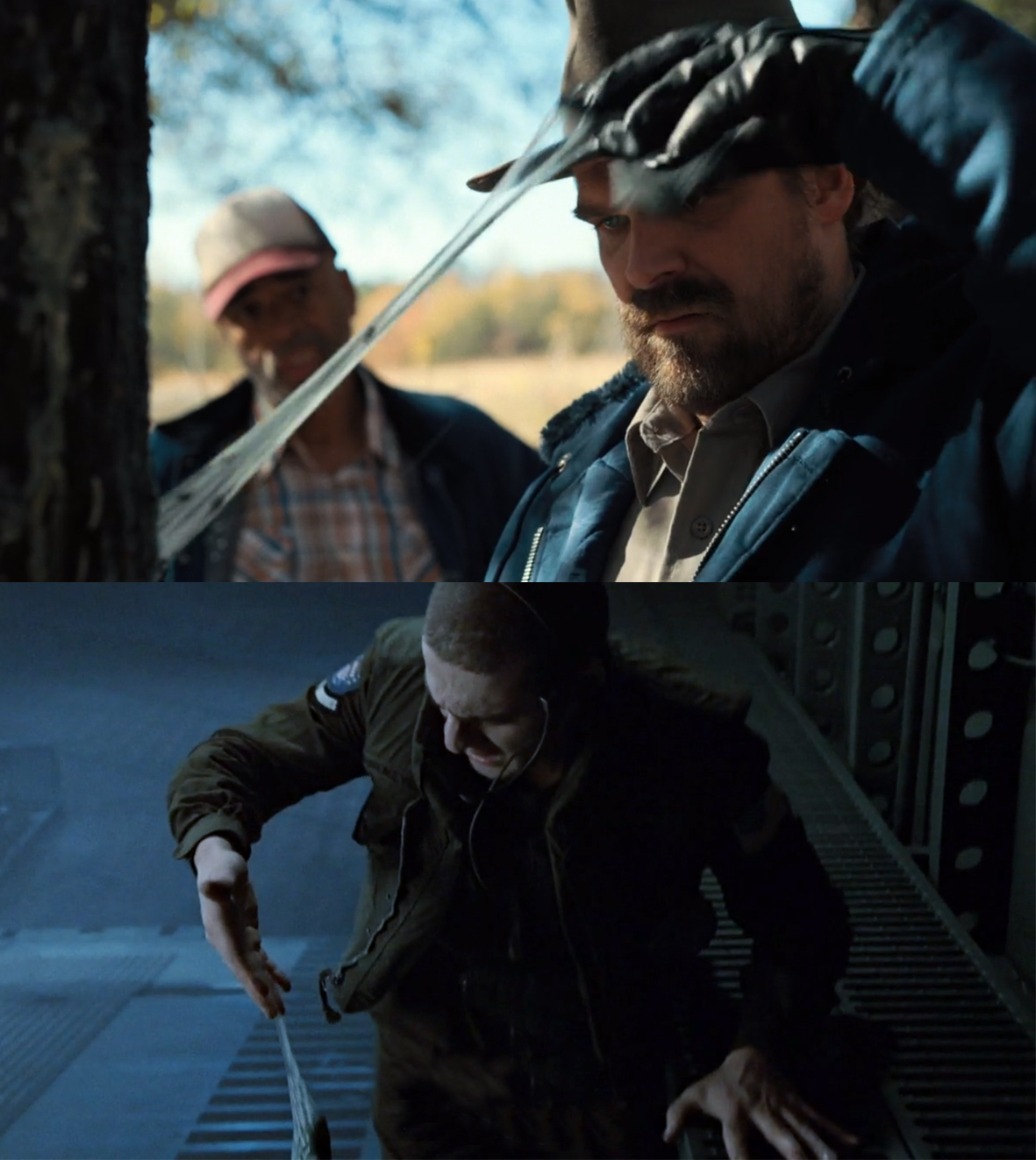 W końcu finał i dorosły z bezbronnym dzieckiem, w przypadku ST2 trochę mniej bezbronnym, gdzie rola heroiny przypadła właśnie nastolatce. I chociaż gros obrazów jest bardzo odległych w każdym wizualnym elemencie to jednak usytuowane są blisko tematycznie, zważywszy na samo zamknięcie. Natomiast niepokojące kształty czegoś ogromnego, za delikatną czerwoną powłoką muszą przecież wam coś przypominać.