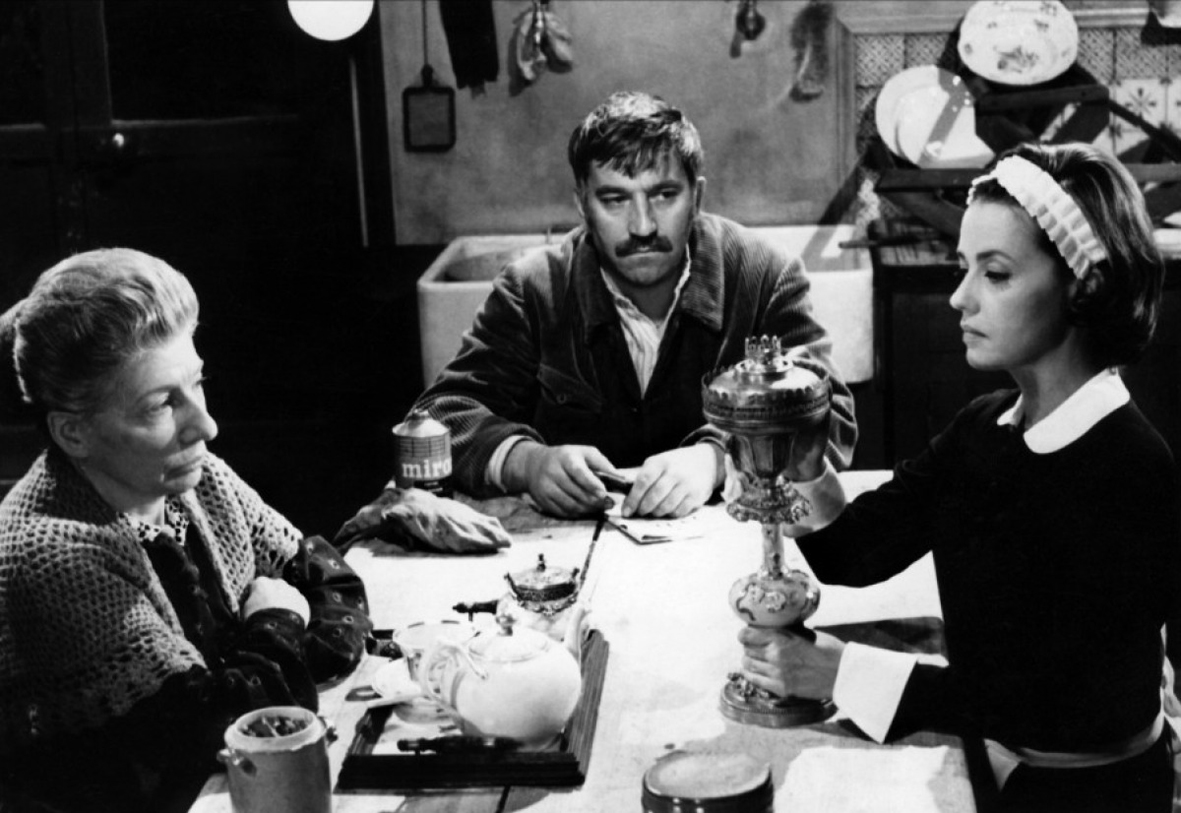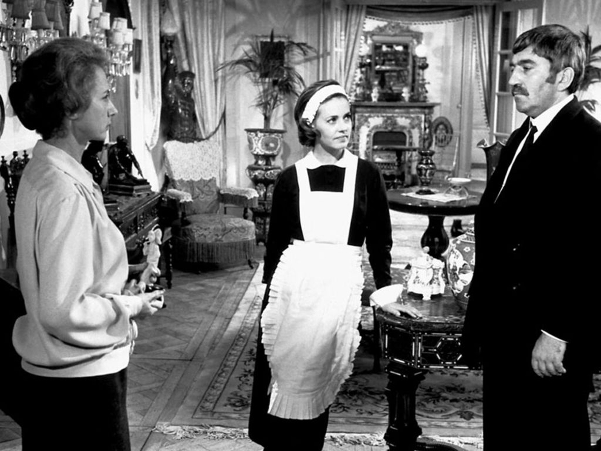 Ale gdyby nie Jeanne Moreau (wybitna francuska aktorka, ktora zmarła w zeszłym roku) i jej udział w tym przedsięwzięciu, obawiam się, że całość brzmiałaby wyjątkowo mdło. To właśnie Moreau jest filarem tej opowieści, w czarno-białym filmie całym jego kolorem. Warto zwrócić uwagę z jaką gracją wciela się w rolę, dostrzec grymasy znudzenia, delikatnej drwiny, momentów, w których postanawia posunąć się krok dalej. Jest irytująco bezczelna, ale przez to wyjątkowo magnetyczna, jak i jej nietuzinkowa uroda. W zasadzie wydaje się być osobą z innej planety, w ogóle nie pasującą do roli służącej. Kusi, pozwala się zbliżyć, by zaraz po tym wyjść i trzasnąć drzwiami. Ogień, czysty ogień pojawił się w tym zatęchłym dworku. I to w zasadzie jej droga i wybory są najbardziej emocjonujące w filmie. Nawet kryminał, który w tle mógłby być brutalnym, okropnym wydarzeniem (co ważne, rzuca on znikome światło na wszystkie poczynania), a jest tylko tłem, bo najważniejsza jest służąca potrafiąca zmieniać ubarwienie w iście ekwilibrystycznym stylu. Istotne jest to, że w Dzienniku każdy sprawia wrażenie, że kontroluje sytuację.