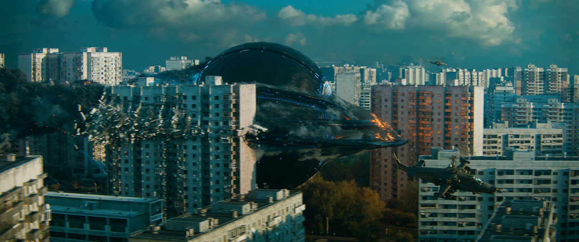 Jednak nawet to wszystko uszłoby płazem, włącznie z setkami pytań, których nie powinniśmy zadawać, by nie wprawić scenarzysty w zakłopotanie, gdyby nie pomysły rodem z hindi cinema, które autentycznie skutkowały krótkimi salwami śmiechu z mojej strony. Przykład? Proszę bardzo. Główna bohaterka (trzeba przyznać, że co jak co, ale castingowcy za punkt honoru postawili sobie zapełnić plan pierwszy, drugi i kolejne pięknymi twarzami z billboardów) migdali się z chłopakiem w czasie, gdy ufo ścina między innymi wieżowiec, w którym mieszka. Razem ze ścianami zsuwa się łóżko, chłopak w ostatniej chwili łapie lubą za rękę. Spodek leci dalej skracając 11 piętrowce do pięter kilku, a wszystko przy akompaniamencie wpadającej w ucho piosenki, rosyjskiej rzecz jasna.