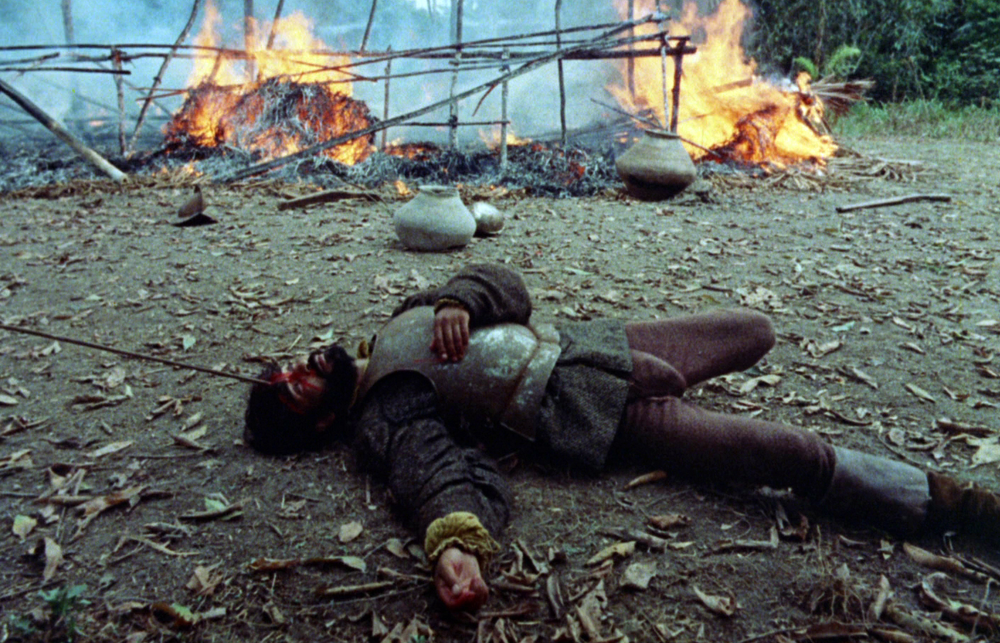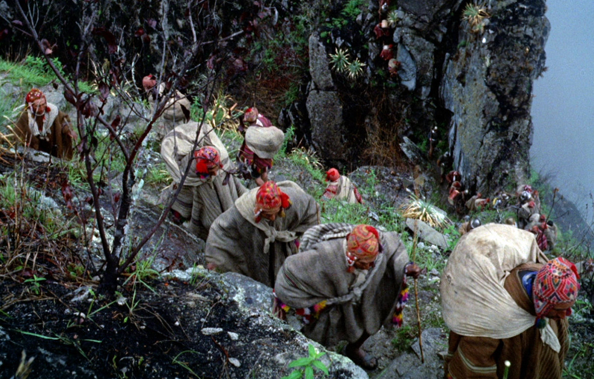 Rodowici mieszkańcy jednak, o wiele lepiej od białych znają warunki świata, w którym przyszło im żyć. Obydwie kultury nie odnajdą wspólnej drogi, jak zdaje się mówić Herzog, gdyż realia znane jednej są zbyt skrajnie odmienne od tych, w których kształtowała się ta druga. Dlatego też „kontakt” ten może się odbyć jedynie na zasadzie podboju i zniszczenia, który tu jednak nie następuje. Ekspedycja, jak już wspomniałem, jest z definicji autodestrukcyjna – wyprawa w głąb puszczy znacznie przewyższa możliwości przedstawionej tu grupy awanturników. W istocie, zdają się oni jedynie „prowokować” dżunglę do „kontrnatarcia”, to zaś następuje, z dnia na dzień coraz potężniejsze. Bohaterowie zapadają na tropikalne choroby, bądź są stopniowo zabijani przez tubylców. Dzięki jednemu z wielu mistrzowskich posunięć Herzoga jednak, strzały, które ich dosięgają zdają się najczęściej pojawiać jakby znikąd (Indian strzelających z brzegu widzimy bardzo rzadko, a jeśli, to niewyraźnie i przez ułamek chwili), jak gdyby to puszcza sama, w złowieszczym odwecie, pragnęła zagłady nowo przybyłych.