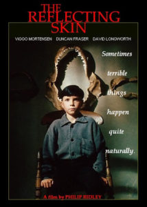 Idaho, lata 50., dziura jakich mało. Ciągle zawodząca matka czeka na powrót starszego syna z wojska. Chowający się po kątach ojciec nalewa benzynę z własnego dystrybutora zajeżdżającym tu zabłąkanym klientom. Oprócz tego siedzi na ganku wczytany w wampiryczną lekturę, ukrywa się w cieniu tak jak i jego wstydliwa tajemnica. Całe sąsiedztwo to porozrzucani tu i ówdzie mieszkańcy, którzy nie dostali się do Twin Peaks Lyncha, o empatii porzuconego pługa, snują się po okolicznych polach, co rusz wpadając w sidła rozbestwionych maluchów. Jest ich trójka z głównym bohaterem na czele i to właśnie Seth Dove stanie w centrum opowieści o beznadziei swojego dzieciństwa. The Reflecting Skin w osobliwy sposób łączy art housowe doznania z surowym kształtem opowieści oraz takim samym prowadzeniem aktorów. Obserwujemy dziwny związek reżyserskich ambicji wykraczających poza malutki budżet, a jednak dających się rozpoznać od początku do końca. Philip Ridley bowiem opowiada niezwykłymi zdjęciami, homeryckim brzmieniem muzyki i tematem, który unosi do miana epickiego, chociaż to tylko (albo aż) dziecięce fantazje. Jednak jako hybryda, The Reflecting Skin jest rzeczą wyjątkową, nawet jeżeli nie sposób (bo nie sposób) wyłapać wszystkich metafor, także na poziomie samych ujęć.