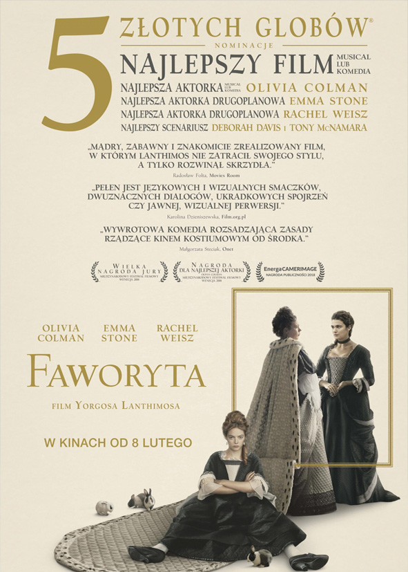 Początek XVIII wieku. Anglia jest w stanie wojny z Francuzami, ale uwagę dworu pochłaniają wyścigi kaczek i pojawienie się na rynku ananasów. Na tronie zasiada schorowana królowa Anna (Olivia Colman), a krajem zamiast niej rządzi jej bliska przyjaciółka, lady Sarah (nagrodzona Oscarem Rachel Weisz). Z podziwu godnym oddaniem dogląda ona przy tym rozkapryszonej i porywczej królowej. Na dwór przybywa nowa służąca Abigail (nagrodzona Oscarem Emma Stone), która swym urokiem oczarowuje Sarah. Sarah bierze Abigail pod swoje skrzydła, a Abigail dostrzega w tym szansę na powrót do swych arystokratycznych korzeni. Ponieważ sprawy polityczne i prowadzenie wojny coraz bardziej pochłaniają Sarah, Abigail stopniowo zajmuje jej miejsce u boku królowej Anny. Rozkwitająca przyjaźń z królową daje Abigail szansę na spełnienie swoich ambicji. Dziewczyna dochodzi więc do wniosku, że nie pozwoli, aby ktokolwiek lub cokolwiek – czy byłaby to kobieta, mężczyzna, polityka czy królik – stanęło jej na drodze. RECENZJA TUTAJ