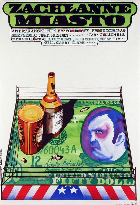 Jestem pod wrażeniem jak Hustonowi udało się przedstawić szarobury naturalizm, dojmującą atmosferę wśród ludzi przegranych i ile ikry wyciągnął z aktorów, którzy w tym rynsztokowym poemacie stworzyli kreacje jedne z lepszych w swoich filmografiach. Stacy Keach to klasa sama w sobie, ale szczególnie mocne wrażenie zrobiła na mnie Susan Tyrrell jako kobieta, notoryczna rozwódka, która nie je, ale sporo pije. Aktorka dostała „tylko” nominację do Oscara. Wspomniany naturalizm to jednak nie tylko scenariusz, który rysuje się w przygnębiających barwach, aktorzy, którzy umiejętnie sportretowali bohaterów usuwających się powoli z życia, ale i zdjęcia. Dodać należy fakt, że Zachłanne miasto to jeden z tych filmów „bokserskich”, który dyscyplinę sportową traktuje z wyjątkowym autentyzmem (i ponurym realizmem). Huston, który raczej lubił nawiązywać „stałą” współpracę z ludźmi z branży filmowej, w Zachłannym mieście po raz pierwszy miał okazję skorzystać z usług Conrada L. Halla. Zdobywca trzech Oscarów, nominowany do kolejnych ośmiu przedstawił Stockton (i wizję Hustona, ale i autora scenariusza Leonarda Gardnera) w najlepszy możliwy sposób. Obdrapane ściany, rozklekotane samochody, czas, który zawiesił się nad tym miejscem i ludzie, którzy mają go od cholery i nigdzie nie muszą się spieszyć, bo spóźnili się na wszystko co możliwe. Conrad L. Hall „malował” barwami, których próżno szukać na paletach, a najlepiej w śmietnikach.