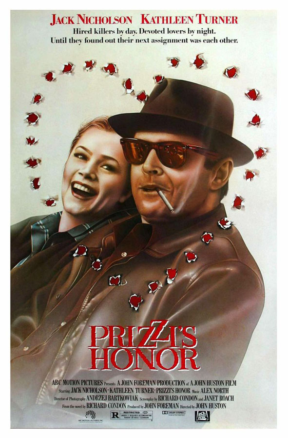 John Huston, reżyser, który często sięgał po literaturę i to z reguły tą wysokogatunkową i tym razem miał doskonały materiał literacki. Swoją powieść na scenariusz filmowy zaadaptował sam autor Richard Condon (z całej sagi o Prizzich została zekranizowana tylko pierwsza część). Trzeba przyznać, że John Huston jako reżyser zaskoczył mnie tutaj pod każdym względem. Przede wszystkim dobijając do 80. lat Huston przedstawił się jako niezwykle wprawny obserwator ludzkiej natury, młody sercem i duchem. Pracując nad scenopisem traktującym o mafii z Brooklynu miał doskonały surowiec do stworzenia historii o miłości i namiętności, zdradzie, pieniądzach i pokracznie rozumianym słowie honor. Jednak kwintesencją tej przebojowej historii jest aktorski duet, który stworzył na ekranie niezwykłą chemię, mowa oczywiście o Jacku Nicholsonie i Kathleen Turner. Obie postaci (Charley i Irene) są niezwykle barwne, w ten sam barwny sposób przeniesione na duży ekran i zagrane przez znakomitych aktorów. Za Charleyem przemawia jeszcze cała, autentycznie zabawna wymowa filmu, która w zestawieniu z kontrastującymi cechami bohatera (twardy gangster trafiony przez strzałę kupidyna jest co najmniej rozbrajający) tylko zyskuje.