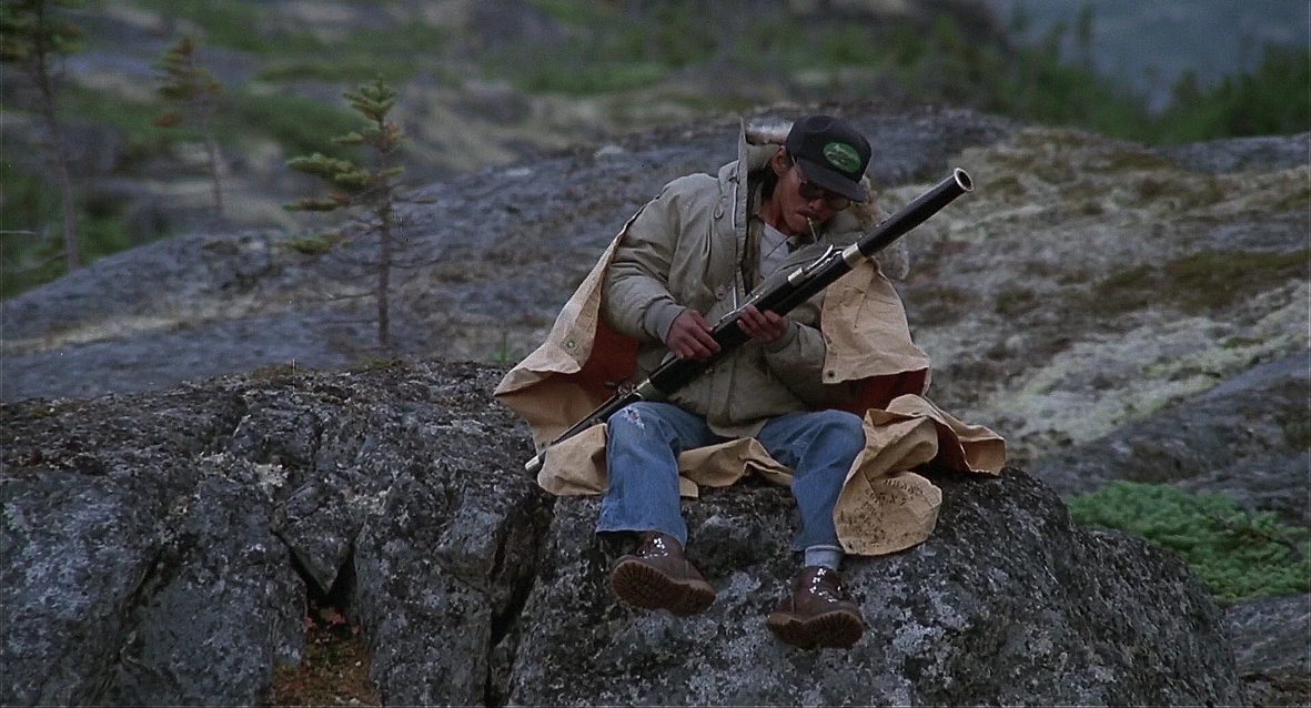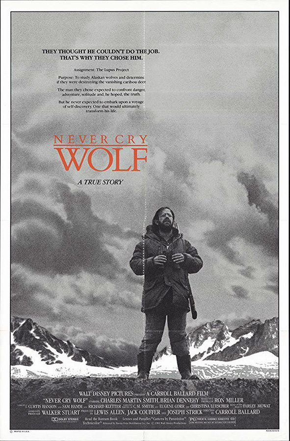Ok, przyznaję, że ta jedna scena rzutuje na klimat całości, bo przecież przez gros czasu jest tu raczej klasycznie, chociaż wciąż wyjątkowo i majestatycznie. Film jest ekranizacją autobiograficznej książki Never cry wolf Farleya Mowata, wydanej w 1963 roku. Wprawdzie zmiany dotyczące książki są spore (głównie względem czasu akcji), ale przesłanie jak najbardziej uniwersalne, a co za tym idzie, niestety, wciąż aktualne. Filmowcy przenieśli fabułę bliżej czasów współczesnych (Mowat został wysłany na swoją „misję” w drugiej połowie lat 40.), ale zachowano jej oryginalną treść. Otóż tak jak w pierwowzorze literackim chodzi o podejrzenia względem wilków, że te dziesiątkują karibu na Alasce i w związku z tym wpływają negatywnie na ekosystem. Wysłany zostaje biolog, trochę naiwny badacz, Tyler (zawsze puszczałem mimo uszu nazwisko aktora Charlesa Martina Smitha. Po tym seansie nabrałem do niego ogromnego szacunku). Zostaje wysłany z ekwipunkiem przez odpowiednie ministerstwo w dziewicze wciąż tereny, by założyć bazę i przeprowadzić badania. Bez umiejętności przetrwania, cudem odratowany przez Inuita, rozpoczyna przygodę, która zmieni całe jego dotychczasowe życie.