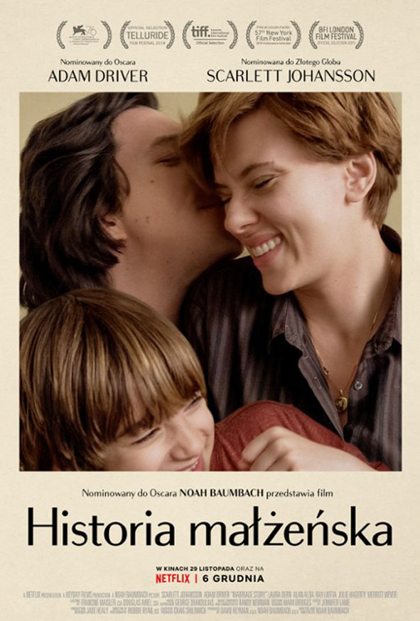 Historia małżeńska to obraz, który porusza, bo jest prawdziwy, szczery i cholernie uczciwy. Jest wzruszający, niekiedy zabawny, a Adam Driver i Scarlett Johansson stworzyli najbardziej dramatyczny związek ostatniej dekady. To jednocześnie ich najlepsze aktorskie popisy od lat. Prawdziwą przyjemnością było patrzeć na to, ile serca włożyli w dwójkę, bądź co bądź, normalnych ludzi z sąsiedztwa. Przedstawili troski, złość, ból i zwątpienie, a nawet niezrozumienie. Wykreowali dwójkę świetnych ludzi z małymi wadami, których to (wad) zaczyna nam brakować, gdy ich nie ma. Można bowiem narzekać na to, że podnosisz ciuchy żony z podłogi, bo te nie trafiają jakoś do szafy, ale, cholera po dziesięciu latach, poczułbym się nieswojo, gdybym nie mógł na to ponarzekać i pewnie tęskniłbym do tego i do wielu rzeczy, które normalnie mi „przeszkadzają”. Życie bohaterów z filmu Baumbacha było kompletne, uzupełniali się, jedno naprawiało troszkę drugie. Gdy są osobno Nicole mieszka w nieładzie, a Charlie nie potrafi wybrać nic z karty z menu. Tylko we dwójkę stanowili jedność.