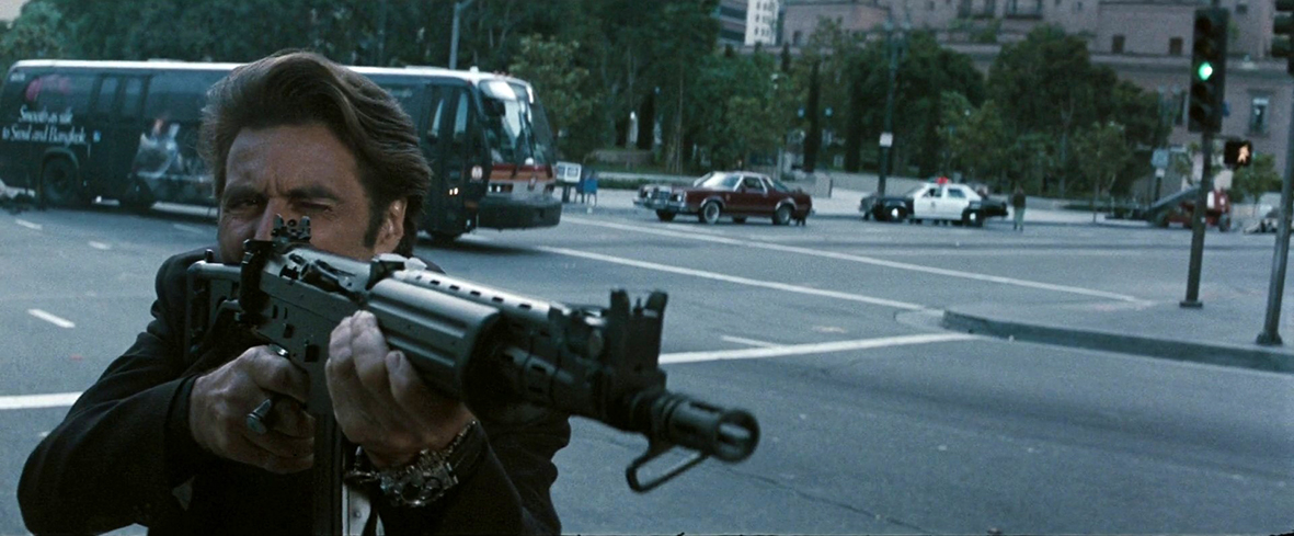 Opisana scena jest znakomicie zagrana, podobnie jak cały film: znakomitym artystom udaje się wydobyć głęboko ludzkie emocje ze scen, które w filmie twórcy innego, niż Michael Mann, mogłyby stać się jedynie powieloną po raz wtóry fabularną konwencją. Tego typu kameralne, skupione na aktorskiej interpretacji sceny występują tu w doskonałej koegzystencji z narracyjnym rozmachem, niezwykle trudnej do osiągnięcia w pełnym sztywnych schematów świecie kina akcji. Z uwagi na to, blisko omawianemu utworowi do filmów Martina Scorsese: pod fabularną powłoką, skoncentrowaną na wiwisekcji świata społecznych patologii, kryją się dylematy bohaterów, mające swe korzenie w dziełach Szekspira czy Dostojewskiego, a nawet – patrząc jeszcze bardziej źródłowo – w tragedii antycznej.