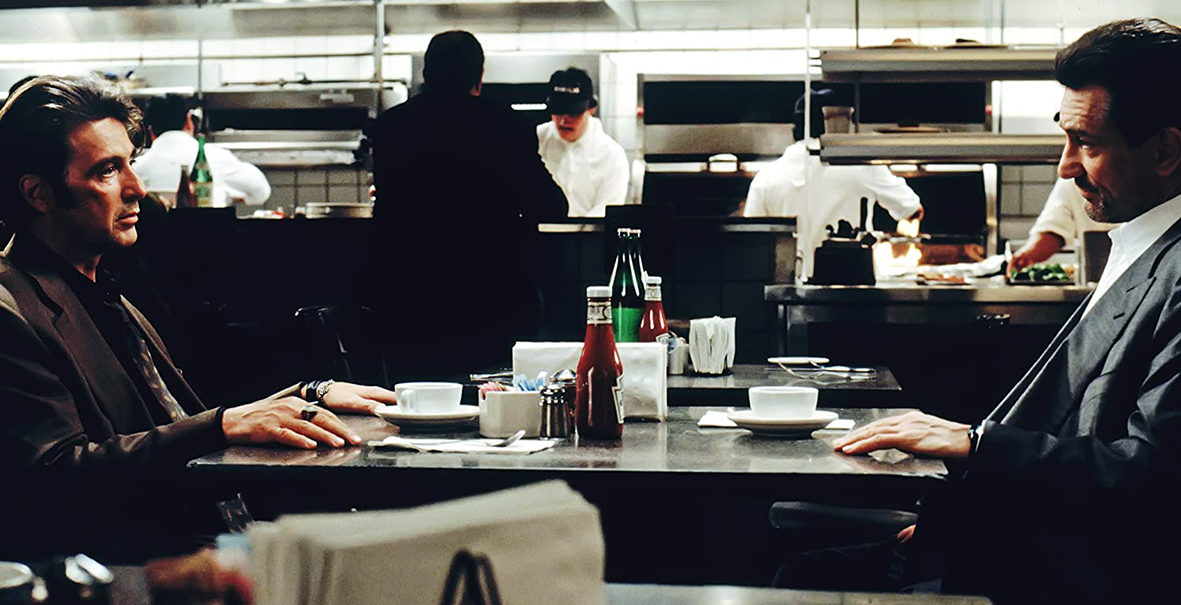 Porywająca sekwencja z towarzyszeniem New Dawn Fades w interpretacji Moby’ego prowadzi widza ku jednej z najbardziej pamiętnych scen współczesnego kina, która, zarazem, znajduje się w samym sercu fabuły Gorączki. To również wielki moment Ala Pacino i Roberta de Niro, esencjonalny dla ich niezwykle bogatych karier, a zarazem zderzenie dwóch wyrazistych, charyzmatycznych aktorskich metod: ekspresji i dominującego stylu tego pierwszego z minimalizmem i oszczędnością, charakteryzującymi drugiego z nich.