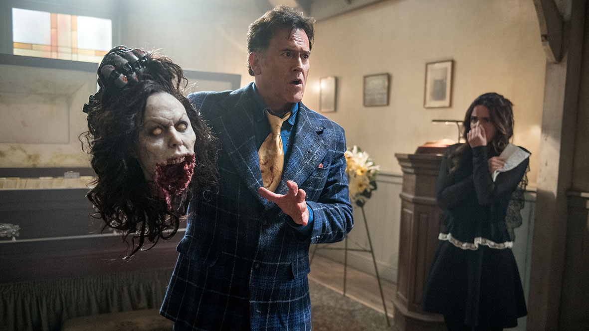 Pisząc o Ash kontra martwe zło nie sposób nie wspomnieć czym w zasadzie jest owo „martwe zło”. Podobnie jak to było w trylogii Sama Ramiego demony (zwane Deadite’ami ) z serialu przywołane przez Necronomicon to krzyżówka obcych z Coś Johna Carpentera (potrafią się upodabniać do swoich wcześniejszych ofiar i wykorzystują to, by podejść kolejne), opętanej Lindy Blair z Egzorcysty (podobne maniery i zamiłowanie do seksualnych podtekstów) i klasycznych „żywych trupów”, obdarzonych jednak dużymi umiejętnościami akrobatycznymi. O ile w powstałym w 2013 roku, robionym na poważnie remake’u Martwego Zła Fede Álvarez wyciągnął z nich tyle grozy, ile to tylko możliwe, o tyle w omawianym serialu, to ciągle są istoty bardziej komiczne, niż straszne. W dobie, gdy takie seriale jak The Walking Dead przywróciły modę na grozę filmowego realizmu znaną z klasycznych opowieści o żywej śmierci, stwory z Ash kontra martwe zło mogą się niektórym widzom wydać trochę figurami z minionej epoki. Jednak im samym trudno odmówić oryginalności i specyficznego uroku.