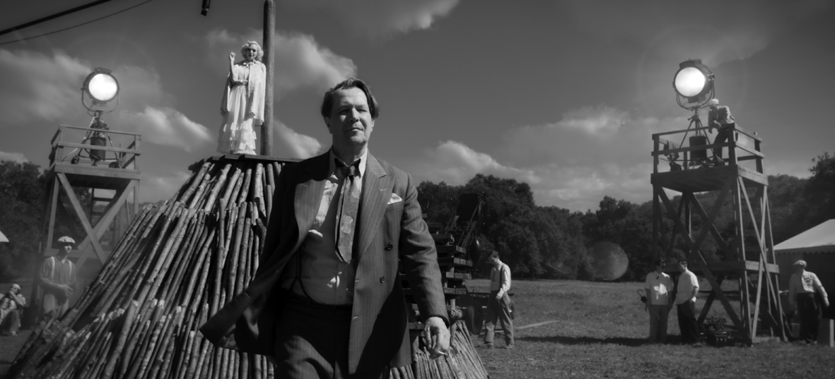 Nie napiszę, że Herman J. Makiewicz to najlepsza rola Gary’ego Oldmana. Aktor ma w swoim portfolio tyle wspaniałych występów, że liczą się już chyba momenty, a nie całe kreacje, bo przecież w większości jest doskonały. Tutaj, w scenariuszu napisanym przez Jacka Finchera (zmarły w 2003 roku ojciec reżysera) liczy się to, jak został przedstawiony jako mężczyzna. Mank u Davida Finchera to człowiek, który w każdym zdaniu przemyca aluzję. Potrafi być złośliwy, ale nie zawsze adresaci tą złośliwość wychwytują. Jest w swoim fechtunku słowem niebezpieczny, bo nigdy nie pudłuje, ale też nie potrafi się zatrzymać w swoich atakach. Zapomina, że małe rany, które zadaje, mogą doprowadzić do wykrwawienia się konkretnej osoby. Jego alkoholizm (w trakcie prac na scenariuszem bardzo już zaawansowany) odbijał się na zdrowiu, ale nigdy na jasności umysłu. Przenikliwy, ale też bardzo szlachetny. I chyba nie zdawał sobie sprawy jak wiele może zdziałać słowem i jak wielki może mieć wpływ na otaczającą go rzeczywistość. I wcale nie potrzebował milionów jak Hearts, by osiągnąć zamierzony efekt.