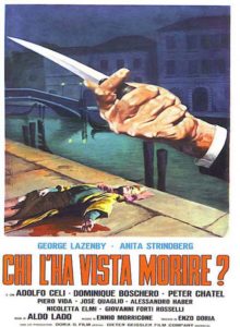 Drugi z kolei film w karierze Aldo Lado (również drugi giallo po debiutanckim La corta notte delle bambole di vetro (Short Night of Glass Dolls z 1971 roku) ma podobną wymowę jak powstały rok później Nie oglądaj się teraz Nicolasa Roega. Podobieństw jest więcej, od miejsca akcji po punkty styczne w scenariuszu. To jednak nie czas i miejsce na podważanie geniuszu Roega, ale rzeczywiście stylistycznie i tematycznie filmy spotykają się w połowie drogi. Kto widział jej śmierć? (Chi l’ha vista morire?) ma niezaprzeczalnie wiele atutów z miejscem akcji na czele, które „robi” tu za pełnoprawnego bohatera opowieści. Wenecja u Aldo Lado sfotografowana przez Franco Di Giacomo jawi się zupełnie inaczej niż ta przedstawiana w reklamowych folderach. Wenecja w Kto widział jej śmierć? jest ponura i nieprzyjazna, osnuta szarymi barwami, płacząca i grobowa. Ta Wenecja to niemalże cmentarzysko, miejsce z innego świata, z całą menażerią dewiacji na zapleczu. Aldo Lado posługując się formułą kryminału opowiada o niegodziwościach, które wychodzą na jaw wraz z postępującym śledztwem. Detektywem zostaje tu Franco (świetny charyzmatyczny Lazenby, wyjątkowo zdesperowany i wiarygodny), który przemierza weneckie upadłe od ciężaru grzechów uliczki i wyciąga na jaw kolejne mroczne rewelacje. Zaczynają ginąć świadkowie, pętla zdaje się być coraz bliżej szyi ukrywającego się antagonisty, którego, mam wrażenie, dość szybko wskażecie.