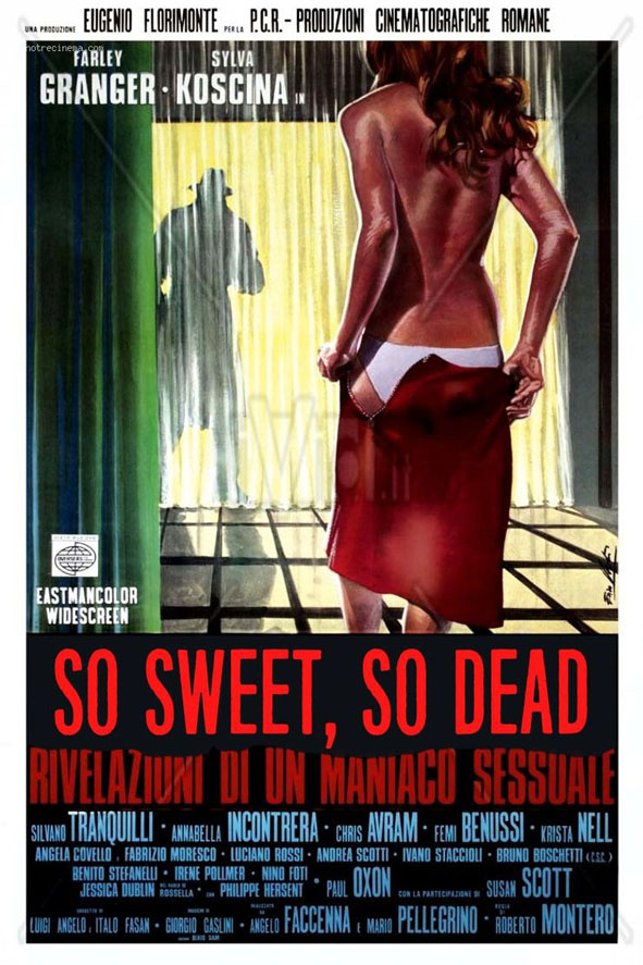 So Sweet, So Dead występujący również pod tytułem The Slasher is the Sex Maniac (oryginalny, włoski to Rivelazioni di un maniaco sessuale al capo della squadra mobile) to solidne giallo w reżyserii Roberto Bianchio Montero. Solidne, jednak z potencjałem na giallo co najmniej wybitne. Szkoda, bo chociaż potencjał nie został zaprzepaszczony, to z pewnością nie do końca wykorzystany. Tym razem na ostrzu noża lądują gardła i ciała kobiet z wyższych sfer. Celebrytki, żony prominentnych polityków, śmietanka towarzyska. Ale czy wystarczy należeć do zamożnej części społeczeństwa, by wystawić się na groźbę utraty życia? Zdecydowanie nie, bo mordercą kierują specyficzne motywy. Odziany w gustowny czarny prochowiec i czarny kapelusz wybiera tylko te niewiasty, które są niewierne. Trafił się nam jakiś strażnik moralności? Być może, ale raczej tej moralności spod znaku pokrętnie rozumianej, bo działania zabójcy skierowane są przecież tylko w kierunku kobiet. Niewiernym mężom włos z głowy nie spadnie, no chyba, że będą próbować przeszkodzić zamaskowanym złoczyńcy. W sprawę angażuje się inspektor Capuana (Farley Granger) doświadczony policjant, który z tą sprawą będzie mieć jednak spory problem.
