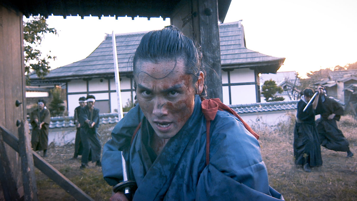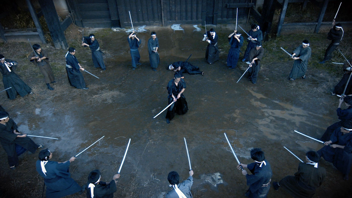 Każdy z tych 400 wojowników musi więc wyprowadzić ten sam co zawsze atak i spotkać się z tą samą co zawsze „nagrodą”. Nużące? Być może, bo po kilkunastu minutach złapałem się na tym, że podjąłem z twórcami inną grę, której być może by sobie nie życzyli i skupiłem się na tym, by przyłapać ich na oszustwie. Tak, znikają choćby niektóre ciała. Gdy opuściłem na chwilę Musashiego i ciągle wpatrywałem się w leżące zwłoki, to po kilku zmienionych ujęciach gdy kamera ciągle wirowała, Musashi ucieka w uliczkę, operator biegnie za nim, Musashi wraca, ciała znikają. To samo dotyczy rannych, bo gdy jeden z drugim potrafi odkuśtykać, to w jakiś sposób nie wraca do akcji, albo po prostu znika. Podejrzewam, że twórcy byliby rozdrażnieni, gdybym miast rozczulać się nad tym wspaniałym 77 minutowym ujęciem, zaczął zbaczać na takie tematy. Sam zresztą byłbym poirytowany takim widzem. Wychwalając więc (a jest co) trzeba zrozumieć ile odwagi i jak karkołomne było to przedsięwzięcie. Kręcony przy powoli opadającym słońcu, z aktorem, który ciągle wywija mieczem (nawet jeżeli ciężar broni był zmodyfikowany pod wygodę aktora, to i tak bieganie i machanie nim przez kilkadziesiąt minut było nie lada wyzwaniem, szczególnie po tak nierównym, zdradliwym terenie).