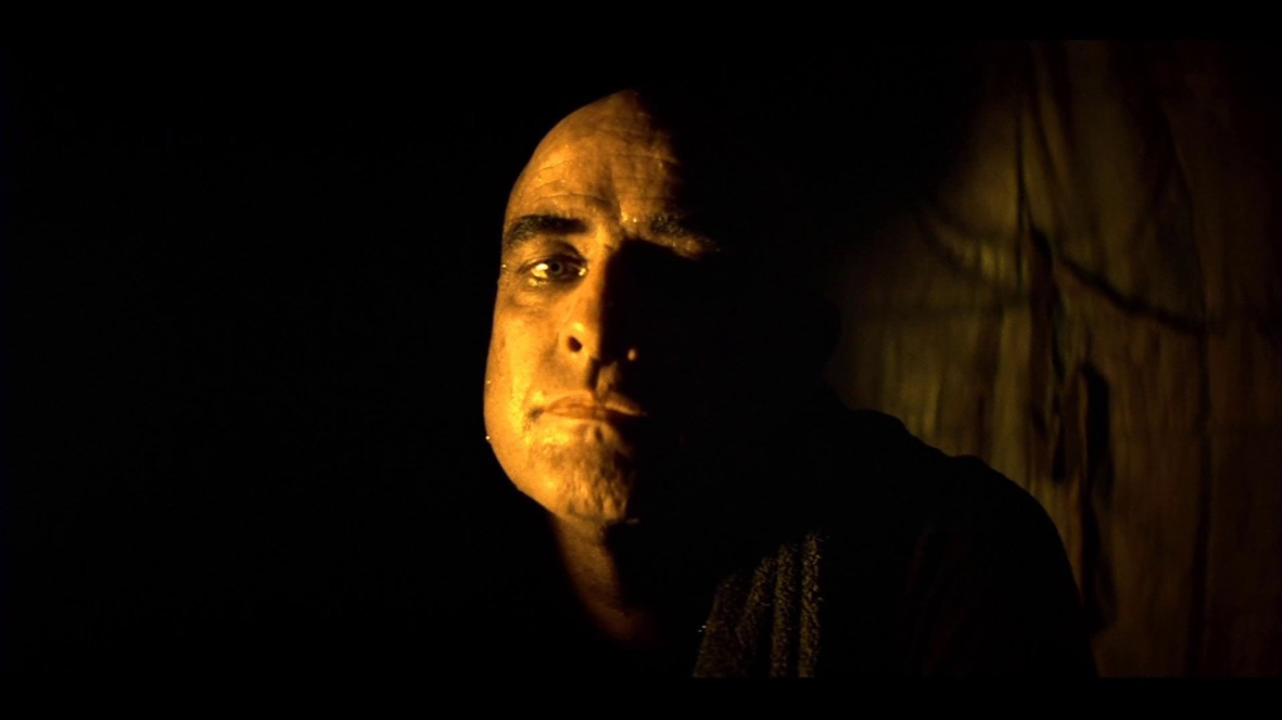 Po blisko dwóch godzinach trwania filmu, po wielu tygodniach wycieńczającej podróży Willarda i jego załogi, spotykamy wreszcie Kurtza po raz pierwszy. To chyba najszerzej dyskutowana i najbardziej kontrowersyjna część Czasu apokalipsy. Świeżo po premierze nie brakowało głosów, iż jest kompletnie nieudana. I choć dziś miejsce filmu Coppoli w historii kina jest niepodważalne, ten fragment dzieła wzbudza zdecydowanie najwięcej ambiwalentnych emocji. Zagrany przez ikonę amerykańskiego kina, Marlona Brando, bohater ten, bardziej niż wysoko postawionego wojskowego, przypomina raczej natchnionego poetę (wrażenie to wzmacniają cytaty z wierszy T.S.Eliotta), który do cna zgłębił najbardziej upiorne oblicze rzeczywistości. Spoglądając na niego, trudno sobie wyobrazić, iż mógłby dowodzić dziesiątkami ludzi; jego charyzma nie jest charyzmą wodza, nawet obłąkanego, lecz raczej samotnego, wyalienowanego z otaczającego świata wizjonera.