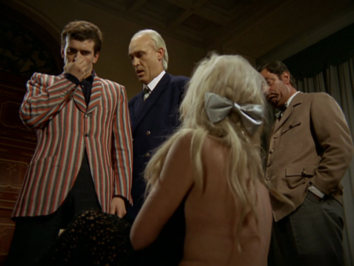Giallo tylko z pozoru dopracowane, z wyśmienitymi surrealistycznymi momentami, z dobrą grą aktorską i do tego, niestety, kompletnie nie angażujące mnie jako widza. To ten szczególny przypadek, gdy twórca, tutaj Cesare Canevari (znany fanom kina włoskiego głównie dzięki swojej Ostatniej orgii gestapo) skupił się na wszystkim oprócz reżyserii. A szkoda, bo historia, która pełnymi garściami czerpie z Agathy Christie mogła być przecież, przy całym swoim halucynogennym wywarze, całkiem nośna. To już nie pierwszy zresztą raz, gdy Włosi zwracają się o pomoc do brytyjskiej autorki kryminałów, a najczęściej inspiracji szukają w I nie było już nikogo (wydanych przez Iskry pod sławetnym tytułem Dziesięciu Murzynków). Co więc zagrało u Canevariego? Z pewnością pewien groteskowy klimat, który udało się uzyskać twórcom dzięki świetnemu porozumieniu na linii reżyser, autor zdjęć i kompozytor. Innymi słowy, jest i na czym oko zawiesić i czego posłuchać. Kryminaliści, którzy przyjechali podzielić się łupem ze starego napadu rabunkowego od początku nie mogą sobie ufać, bo wszak każdy z nich „robi w zawodzie”. Wiadomym jest, że o uczciwości nie może tu być mowy. Przekłada się to na spojrzenia i intrygi. Każdy ma te same motywy, chce wykończyć kolegę i koleżankę, przystąpić do lichego sojuszu, wyjść na swoje, a niektórzy chcą jak najszybciej opuścić to miejsce. Giną kolejne osoby (ktoś wypada przez okno, inny zostaje zasztyletowany), klucze pojawiają się i znikają (ktoś ma też dostęp do monitoringu i śledzi poszczególnych gości). Śmierć zbiera żniwo i co ciekawe przy części zgonów znamy i widzimy morderców, a jednak nie wiemy jednocześnie, kto przeżyje do finału.