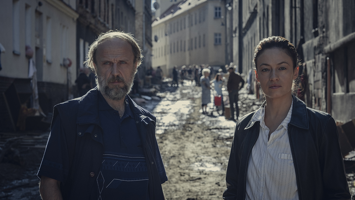 Rojst’97 to nie tylko powrót do fikcyjnego miasteczka, ale podobny schemat przy zainicjowaniu fabularnych wydarzeń. Jest więc przyjezdna, tym razem policjantka z dużego miasta. Jest na zesłaniu i musi przez jakiś czas pobyć w cieniu małego miasteczka. Ma inne metody, jest zaradna, odważna, ambitna. Gdy dochodzi do przerwania wałów i zalewa miasto, policja trafia na zwłoki 12-letniego chłopca. Tutaj nic się na komisariacie nie zmieniło, bo sukces mierzy się innymi miarami. Liczy się szybka kwalifikacja jako utonięcie, więc wszyscy powinni być zadowoleni. Nie Anna Jass (Magdalena Różczka), wspomniana policjantka i zarazem główna bohaterka Rojst’97. Coraz więcej bowiem tropów wskazuje na morderstwo. Co poza tym? Woda wymywa cmentarzysko w lesie na na Grontach, więc o niechlubnej przeszłości nie można dłużej milczeć i do historii z 1945 roku powracamy częściej niż w pierwszym sezonie. Do miasta wraca również Piotr Zarzycki (Dawid Ogrodnik) tym razem w charakterze redaktora naczelnego Kuriera. Czas się jednak pod wieloma względami zatrzymał w małych miasteczkach i stanowi to o niezmiennym charakterze ludzi i miejsca. Przecież nie da się poszerzyć ulic, zmienić małomiasteczkowego oblicza, dać ludziom przekonanie o tym, że tu będzie kiedyś inaczej. Relikty PRL-u wciąż dobrze się trzymają i wciąż tak samo straszą. Hotel Centrum nie przeszedł znaczącego liftingu, a obdrapane kamienice są po prostu jeszcze bardziej obdrapane, teraz dodatkowo podmyte wodą. Gdy miasto próbuje po raz kolejny wstać z kolan, policjantka Jass razem z dokooptowanym partnerem (fantastyczny jak zawsze Łukasz Simlat) kluczy pomiędzy adresami, osobami, świadkami i podejrzanymi.