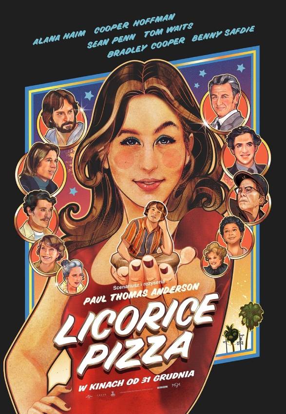 Najlepiej pisać o Licorice Pizza skupiając się na własnych emocjach i o tym, co ten konkretny tytuł z nami zrobił. Ja czułem się tu dobrze i bezpiecznie, chociaż byłem wciąż gdzieś na granicy sennego marzenia, a wybudzenia. Nie znam lat 70., ale te przedstawione tutaj przez Paula Thomasa Andersona wabią wręcz nieprzyzwoicie tym, że są bezpretensjonalne, filmowane bez bez nadęcia i bez silenia się na komentarze. Nie widać tu stylizacji, umiejscowionych z premedytacją artefaktów popkultury. Wszystko odbywa się mimochodem, a na pierwszym planie ciągle jest przyspieszony rytm bicia serca. I to jest w filmie Licorice Pizza najpiękniejsze, brzmienie i wymowa dostarczająca w gruncie rzeczy dość wyświechtanych prawd o tym, że każdy ma prawo błądzić, bać się, głupio zakochiwać, spóźniać się na wiele (większość) życiowych okazji i marzyć o kolejnych. Nostalgią jest więc wybrukowane dzieło Andersona, ale też wszystkimi naszymi kolorami młodości. Film pachnie słodyczą, goryczą, napięciem seksualnym, wspomnieniami, których nie mieliśmy, a chcielibyśmy mieć. Może i wypada przez to Licorice Pizza trochę smutno, bo nie każdy (u nas nad Wisłą nikt) miał takie życie jak Gary, nastoletni aktor z San Fernando. Jednak czy to jest aż tak istotne? Miejsce akcji filmu, czas, pogoda, muzyka z pewnością sprzyja melancholijnemu nastrojowi i budzi w widzu uśpionego romantyka. To przecież kino o dorastaniu, coming-of-age o pryszczatym chłopcu z lekką nadwagą i dużo starszej dziewczynie. Czy takie uczucie ma szansę zaistnieć i się rozwinąć? Każdy ma nadzieje, że się uda, nawet jeżeli to tylko wakacyjne uniesienie. Będzie co wspominać i nawet ta rozdarta wiecznie Alane odzyska w końcu spokój ducha.