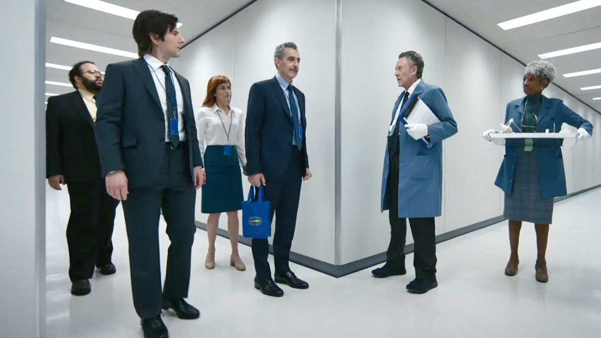 Fabuła? Trzeba pokrótce opisać patent jaki wymyśliła korporacja Lumon, która w Rozdzielenie robi za tę złą organizację. Otóż możesz na własne życzenie rozdzielić swoją osobowość i od momentu operacji ty i twoje alter ego będą podążać dwoma ścieżkami. Jedna strona nie będzie wiedziała absolutnie nic o drugiej, mając jednak tą świadomość, że alter istnieje. Istnieje więc twoja wersja przeznaczona do pracy w korpo, gdy poświęcasz osiem godzin w służbie firmie i nic poza tym. Alter włącza się po przekroczeniu progu fabryki i w schludnym biurze, przy swoim komputerze, w towarzystwie kilku osób wykonujesz te dziwne rzeczy, o których nie masz pojęcia. Praca machinalna, odtwórcza, ale też nieco zastanawiająca. Osiem godzin nie stanowi dnia jak stoi w tytule jednego z arcydzieł Fassbindera i osiem godzin w serialu Rozdzielenie mija bardzo szybko. Jest przerwa na lunch, pogaduszki, kilka uśmiechów, powrót do biurka i znowu trzeba przeklikać coś absurdalnego w retro systemie. Po wyjściu z zakładu alter znika w cieniu, pojawia się druga osobowość. Na co to komu? Motywów może być bardzo wiele, jak choćby motywacja głównego bohatera, który nie może się podnieść z traumatycznych przeżyć. W wypadku zginęła jego żona, a on, wrak człowieka, nie był w stanie normalnie funkcjonować w pracy. Zdecydował się na bezbolesny zabieg, odłączył się i przez część dnia nie myśli już o wypadku, który wcześniej przekreślił wszystko.