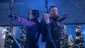 Cierpliwość Bartona testuje w serialu Kate Bishop, młoda dziewczyna, która jest zafascynowana dokonaniami Hawkeye’a. Sama straciła ojca w bitwie o Nowy Jork, więc członek Avengersów jest tutaj po trosze substytutem ojca, chociaż on sam stroni (na początku) bardzo mocno od nowych znajomości. Jest tutaj (w Nowym Jorku) traktowany jako celebryta, wszyscy pamiętają jego bohaterskie wyczyny. A Kate? Sprawności i bezczelności nie sposób jej odmówić. Mogłaby stać się pełnoprawną członkinią jakiejś domorosłej grupy zwalczającej przestępców, ale Burtonowi jakoś niespieszno by wziąć ją pod skrzydła. Będzie musiał to zrobić bo Bishop, która pochodzi z towarzyskiej śmietanki, wplątuje się w intrygę. Na domiar złego wplątuje w nią Hawkeye’a. Wiadomo przecież, że Barton nie może ot tak zostawić świeżaka na lodzie. I tak, co rusz, zapewniając małżonkę o rychłym powrocie przedłuża swój pobyt w Wielkim Jabłku właśnie na chwilę przed świątecznym posiłkiem, pierwszą gwiazdką, otwieraniem prezentów.