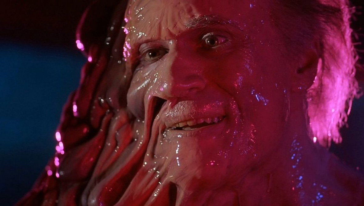 Dzisiaj Zza światów ogląda się wciąż dobrze, nawet jeżeli mało tu subtelności Lovecrafta, bo świat równoległy został wyłożony wprost na talerz. Jednak to Stuart Gordon, który nie zwykł w drzwiach naciskać klamki, a po prostu je wyważa. Stąd też wynika ta cała ekspresja, śluz, wydzieliny, koszmary z rzędu obrzydliwych. Gordon lubuje się bowiem w sprzedawaniu paskudztwa wykorzystując talent swoich współpracowników, artystów od charakteryzacji. Szalony naukowiec, który został naznaczony przez świat równoległy to wizytówka tego filmu, podpis twórcy i w zasadzie element dla którego głównie powinniście obejrzeć ten film. W XXI wieku nic takiego już nie nakręcono pomimo dzielnych prób, które odrzucały jednak totalne szaleństwo (choć bywa i dosadnie), a jego brak wypełniały nastrojem (jak The Void z 2016 roku).
