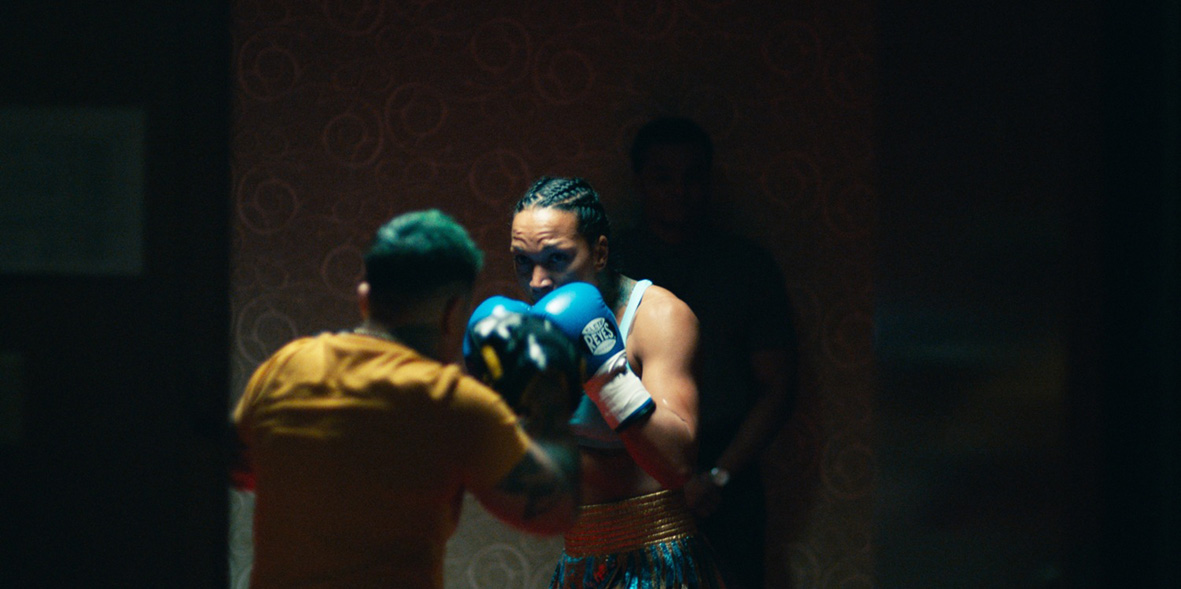 Wspominany również autentyzm to głównie, a może i przede wszystkim, zasługa odtwórczyni głównej roli. Dla Kali Reis to aktorski debiut, ale nie tylko, bo jest autorką pomysłu i współscenarzystką. Autentyzmu dodaje tutaj jej zawodowa kariera na ringu, bo trzeba wam wiedzieć, że Reis przebyła imponującą drogę jako profesjonalna bokserka. Na ringu od 2008 roku, ostatnia walka notowana jest na listopad 2021 roku. Dzisiaj dobija powoli do 40 lat., więc jest to już bokserski zmierzch. Tam zresztą osiągnęła już pewnie wszystko co można, więc zajęła się innymi rzeczami. W drodze jest nowy sezon True Detective, w którym będzie grała u boku Jodie Foster. A wracając do Na pięści, to Kali Reis nie zawodzi ani razu. Co do fizyczności i swoistej ekspresji nie trzeba tu nic dodawać, bo ktoś kto spędził tyle lat w tym brutalnym zawodzie, wie jak się poruszać. Nie ma tych scen aż tak wiele, ale każda z nich jest intensywna i pełna realizmu. Ale nie tylko pięści mówią nam wiele o postaci.