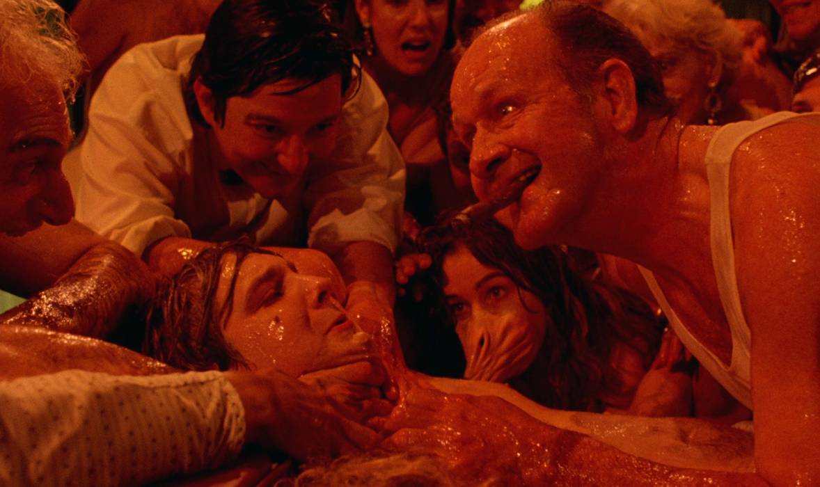 Yuzna każe nam uwierzyć, że Billy niemal z dnia na dzień przeobraża się w podejrzliwego chłopaka. Cóż, radzę przyjąć ze spokojem te rewelacje, by czerpać z seansu tylko pozytywy. Nie drążyć, zapomnieć o tych grubych niciach, którymi wykończony jest scenariusz i cieszyć nieblaknącą po dzień dzisiejszy frywolną groteską, surrealizmem, a przede wszystkim niepohamowaną twórczą inicjatywą, którą Yuzna wykazał się w 1989 roku. Tak, metafora to jedno, można o tym jeszcze kilka rzeczy napisać, ale Towarzystwo zapisało się w pamięci oddanych fanów nie ze względu na iście diabelską krytykę społecznej kasty czy wtrącenie elitarnych członków społeczeństwa w pewien rodzaj obrzydliwego nawiasu. To horror, soczyste mlaśnięcie body horroru i w końcu nietuzinkowe efekty specjalne czynią z Towarzystwa film, który i po dziś dzień widz powinien oglądać z pełnym zaangażowaniem. Ten sam body horror wychodzi z esencji towarzystwa, które, jako grupa ludzi przynależą do sekty maltretującej społeczne niziny. Dosłownie, wysysają siły witalne, wnętrzności i patrzą z lubością w ich gasnące spojrzenia. A to wszystko odbywa się przy akompaniamencie śmiechu i wtórze dobrej zabawy, niekoniecznie dobrego smaku, bo Yuzna tak jak wytrawnie (miejscami) miesza swój komentarz (społeczny i polityczny) z makabreską, tak potrafi mu się ulać z przaśnego dzbana taniej podniety rodem z serii Porky’s.