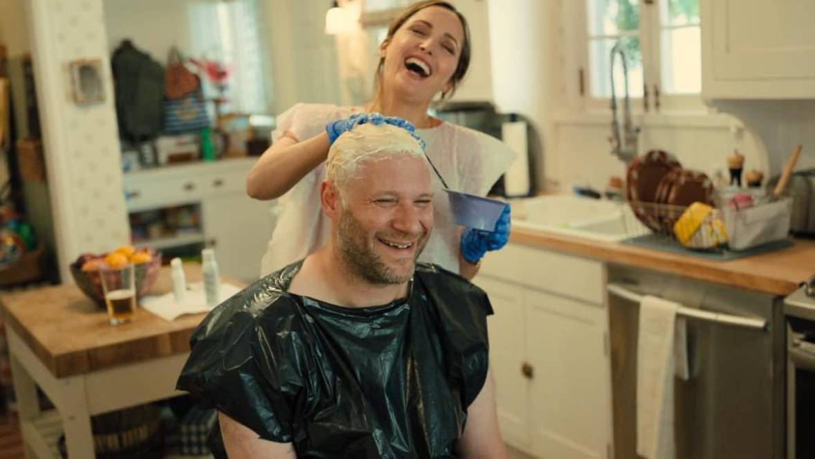 Ciągle jednak piszę w kontekście Platonicznej przyjaźni o Rogenie, a to przecież jeden z dwójki głównych bohaterów i nawet nie pisał tu scenariusza. Sethowi partneruje Rose Byrne. Przezabawna, naturalna, świetnie łączy komediowy główny charakter scenariusza ze sferą obyczajową. Byrne i Rogen są jednocześnie współproducentami telewizyjnego show, który swoją premierę miał na stacji Apple TV+. To nie jest zresztą ich pierwsza wspólna praca. Para ma na koncie występ w dylogii Sąsiedzi (wielce udanej). I widać, że wspólna gra przynosi im frajdę. Przekłada się to na jakość w interakcjach, czuć dobrą chemię pomiędzy nimi. Za scenariusz odpowiadają Francesca Delbanco i Nicholas Stoller. Pani scenarzystki i reżyserki dwóch odcinków serialu być może nie znacie, bo jest świeża w branży, ale Stoller to stary wyjadacz. Ma na koncie choćby wspomnianych Sąsiadów, ale i kilka innych udanych komedii.