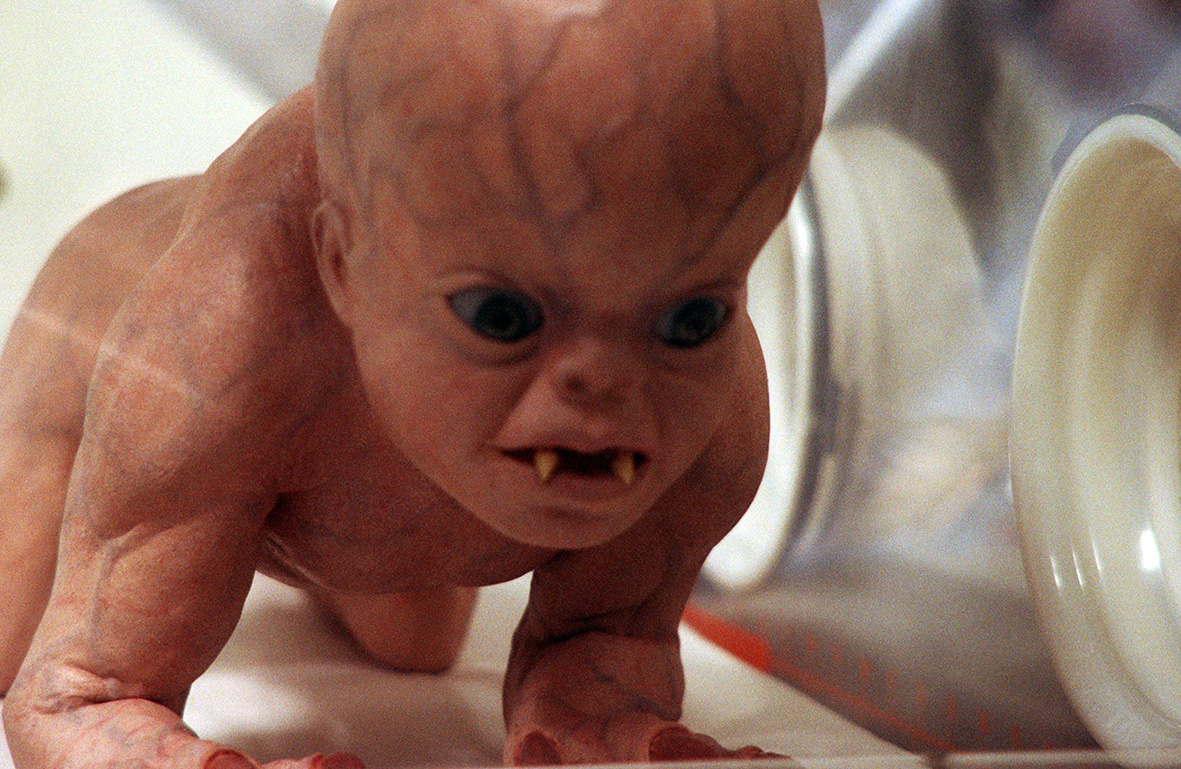 Może i druga część filmu o niemowlakach mutantach nie ma takiej siły jak pierwsza z 1974 roku, ale jednego nie można odmówić twórcy, fantazji. Larry Cohen bowiem nie odpuszcza, nie cofa się, a wręcz brnie do przodu ze swoją historią i poszerza uniwersum. Jako reżyser ma plan, który konsekwentnie tutaj realizuje, a rozpoczął w 1974 roku pierwszą odsłoną swojej złowieszczej trylogii. Po wydarzeniach z części pierwszej, świat zdaje się być uświadomiony, że dzieci mutanty się rodzą. Jednak współczesny widz może być trochę zbity z tropu zachowaniem wewnątrz filmowego świata Cohena, jakże innym od wszystkich teorii spiskowych uskutecznianych na przestrzeni dekad w kinematografii (CIA, tajne bazy, programy rządowe, w których niemowlaki mogłyby brać udział i stać się zbrojnym ramieniem swojego państwa).