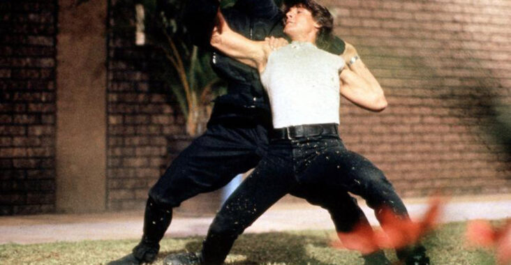 Davidson walczy więc z hordą ninja, kładzie ich pojedynczymi ciosami, a hitem jest walka pod wodą, w której Davidson uderza jednocześnie dwóch ninja w brzuch i już, chyba są martwi. Co rusz zaskoczenie, twist za twistem, kino ciągłych niespodzianek jak ta, w której ninjetka (tak poufale do kobiety ninja zwraca się sierżant Curtis Jackson) zrzuca maskę niczym Ethan Hunt z Mission Impossible (Davidson zna ten patent ze szkoleń ninja, w ten sposób to tłumaczy).