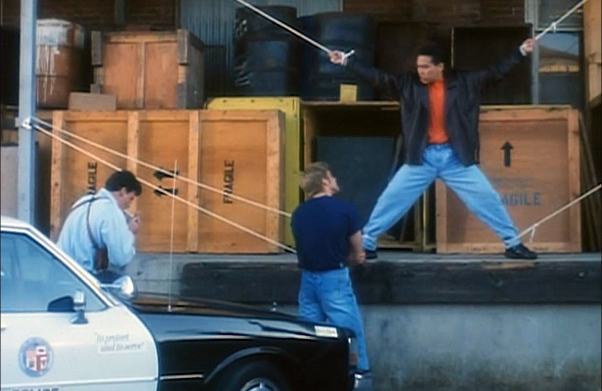 Czy Mordercza Triada to osobliwe kuriozum? Wolę myśleć o tym filmie akcji raczej jako o świadomej zabawie z gatunkiem. Mordercza Triada ma bowiem dużo ikry i gdyby został nakręcony 10 lat wcześniej, mógłby być klasykiem (po doszlifowaniu kilku elementów). Jako film akcji ma wszystko, czego potrzebuje dzisiejsze straight to DVD. Pościgi, samochody wybuchają jakby wiozły 100 litrów benzyny na pace, kaskaderzy turlają się po schodach i zapewne regenerowali się długimi tygodniami po pracy na planie. Do tego dochodzi dobra choreografia. Gary Daniels to znamienity kopacz, zna swoje możliwości, nie robi uników przed walką, a ekipa nie ucieka się do szybkiego montażu. To w końcu film zabawny w ten nieco głupkowaty sposób, bo w rzeczywistości Mordercza Triada chciałaby aż za mocno być klasykiem buddy movie (gliniarz z Hongkongu VS policjant z Los Angeles, w tej roli Ken McLeod). Nie pomaga filmowi niechlujny rys i bałaganiarski montaż. Hitem jest bójka przy balkonie, gdzie gliniarz raz wisi, raz się bije, a zaraz zwisa ponownie. Ewidentnie ktoś pomylił ujęcia, co zakrawa na legendarne sceny ze zwisającym mikrofonem.