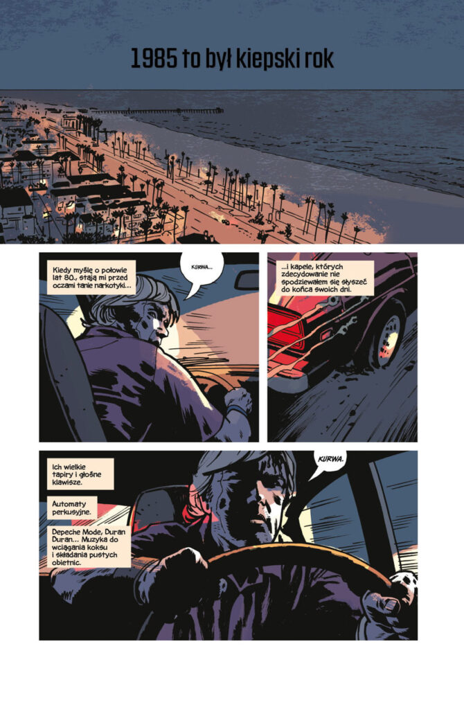 Wspaniały jest ten zeszyt, graficznie wciąż ilustrator operuje kinowymi kadrami, widzę tutaj najlepsze filmy, które chciałbym zobaczyć na przełomie lat 80. i 90. W powieści graficznej oczywiście wygląda to dużo lepiej niż w tytułach 'straight to DVD’. Obawiam się bowiem, że kiepski budżet zabiłby filmowy materiał (jak to się z reguły działo), a tutaj, u wciąż solidnego duetu Brubaker i Phillips, większość sobie dopowiadam. Rysuję w wyobraźni kształty, uzupełniam brakujące kadry akcją, która mogłaby mieć miejsce. Ilustrator daje mi stop klatkę, historia i scenariusz Eda Brubakera wprawia całość w ruch, ale potrzebne dodatki wypływają z moich setek obejrzanych na VHS filmów.