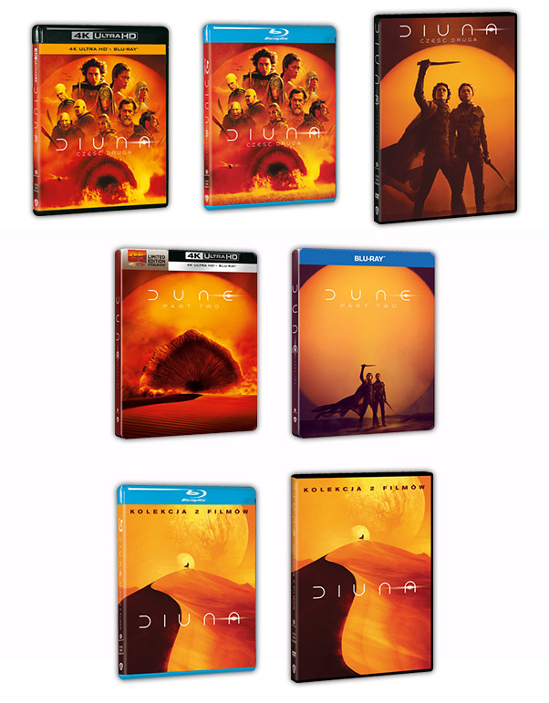 Nowość 4K UHD™, Blu-ray™ i DVD – film Diuna: Część druga już 25 maja ukaże się na płytach również w kolekcjonerskich, limitowanych wydaniach Blu-ray™ Steelbook i 4K UHD™ Steelbook, a także w specjalnych wydaniach Blu-ray™ i DVD zawierających dwa filmy z serii Diuna.