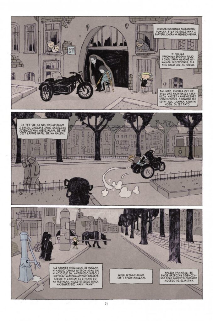 A jednak ja trochę tej nostalgii widziałem, ale znowu, w kontaktach z siostrami. To te dobre chwile, wspólna zabawa, wakacje, kilka momentów granicznych. Piękne małe momenty z charakterną kreską Jacka Frąsia.
